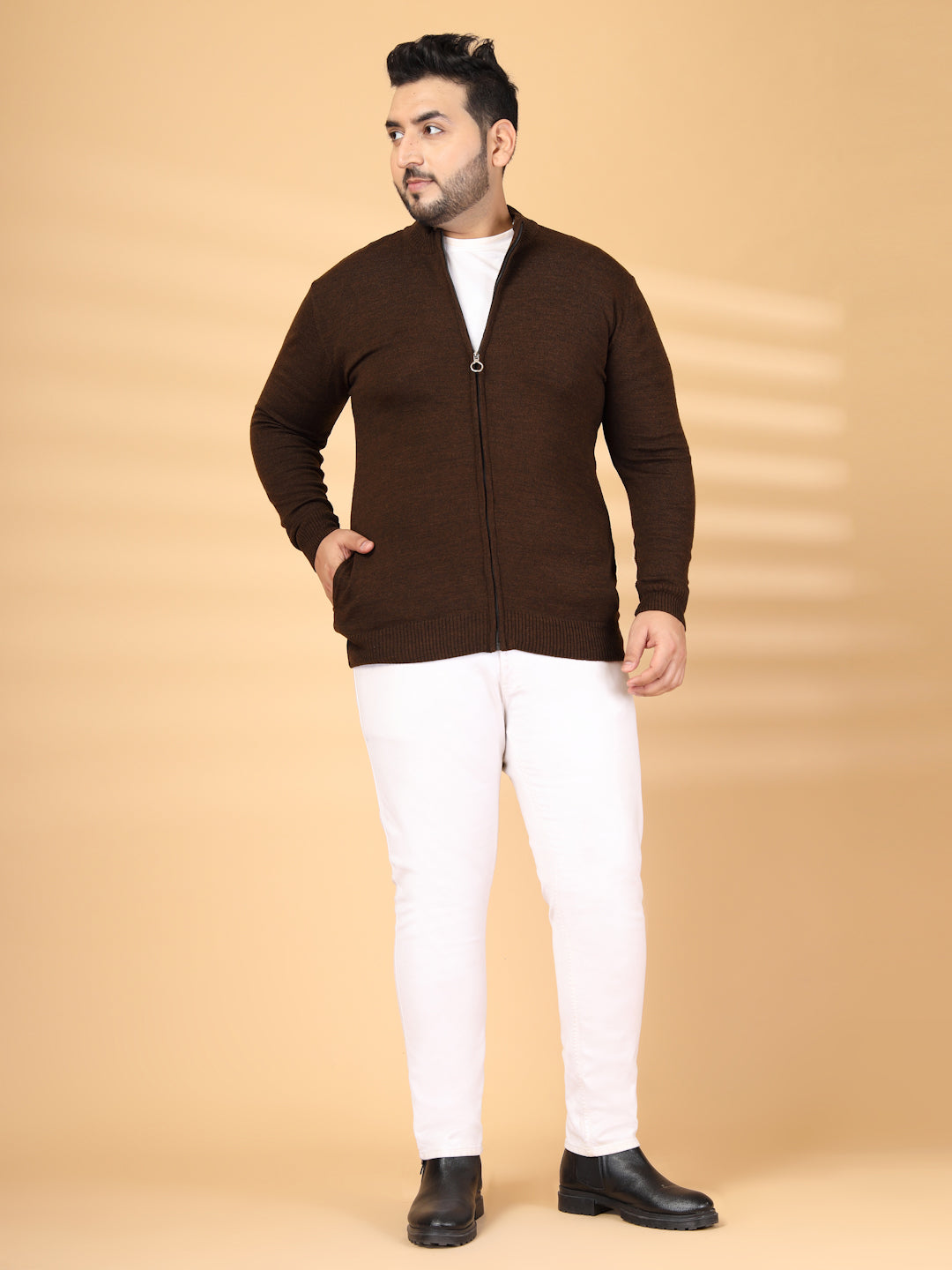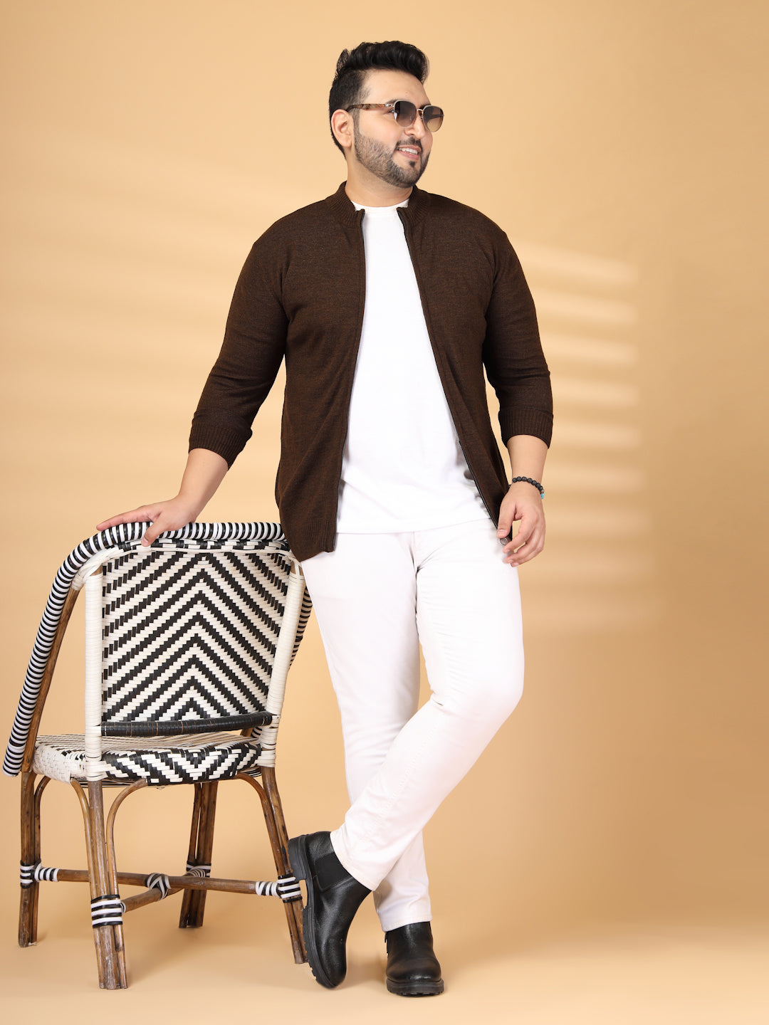 Plus Size Men Front-Open High Neck Long Sleeves Sweater
