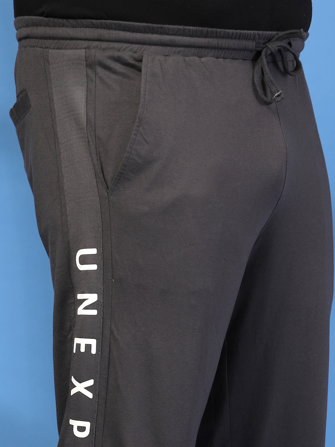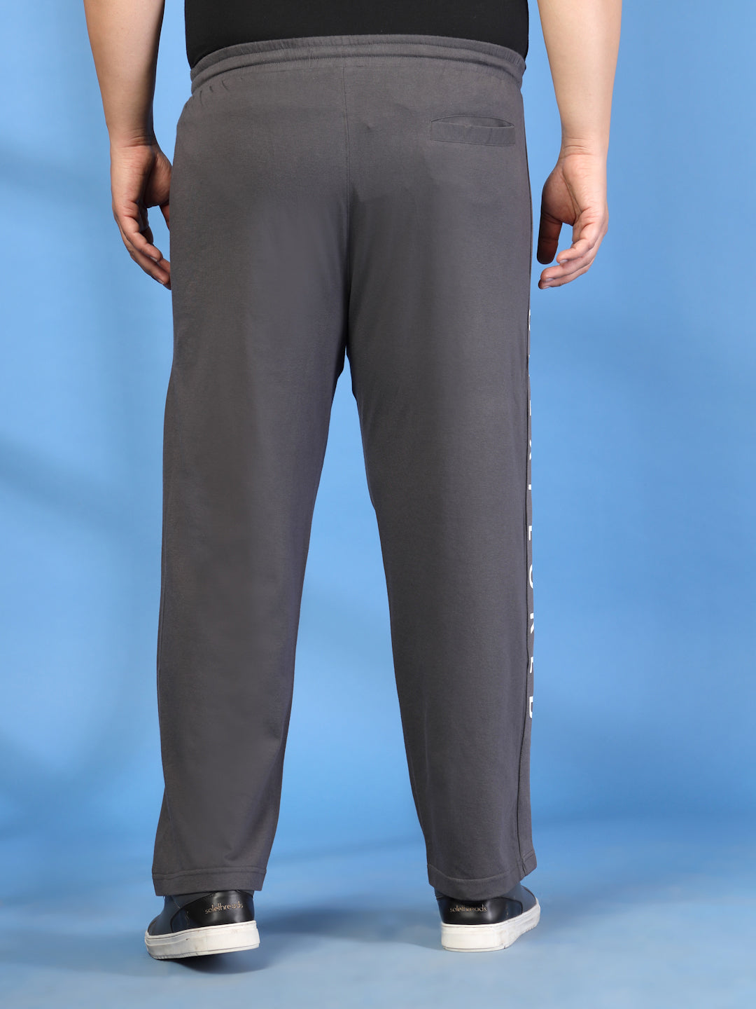 Charcoal solid regular-fit mid-rise track pants with print detail, has an elasticated waistband with drawstring closure and 3 pockets