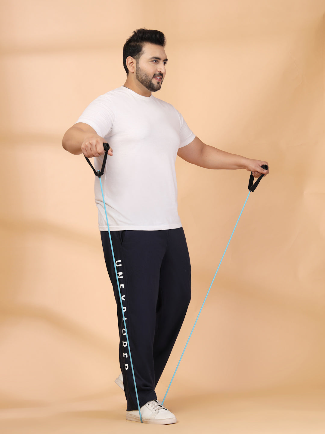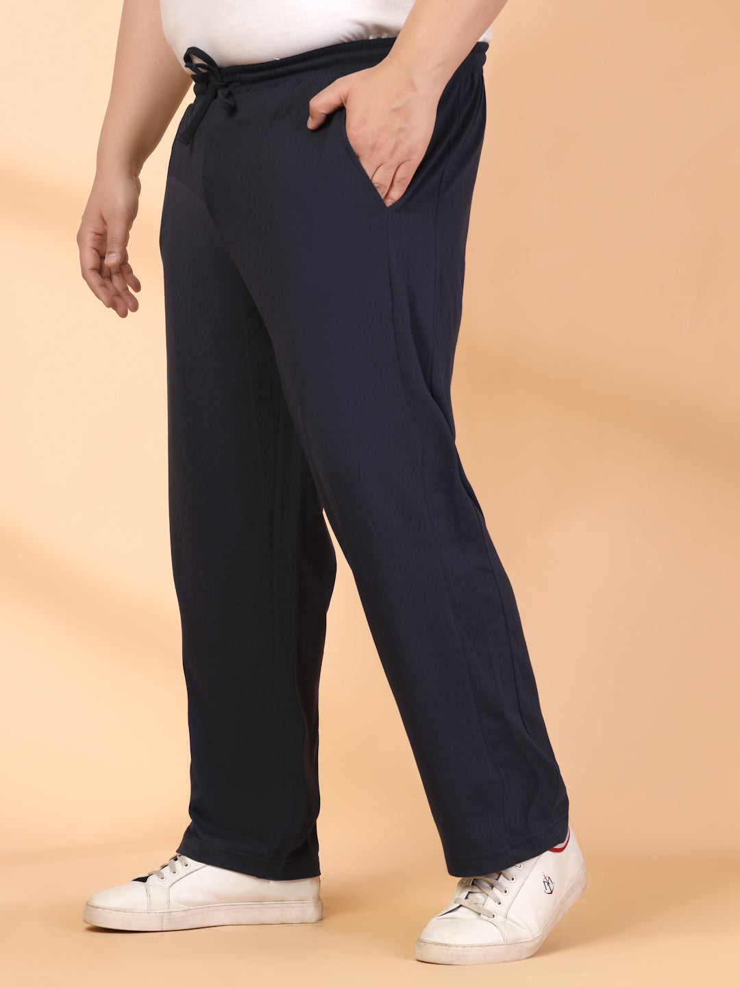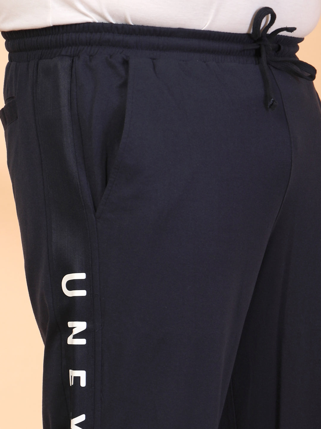 Navy blue solid regular-fit mid-rise track pants with print detail, has an elasticated waistband with drawstring closure and 3 pockets
