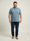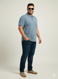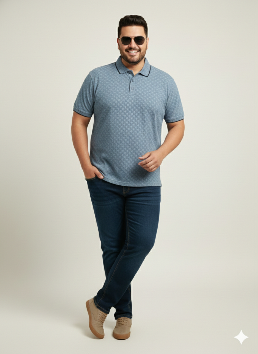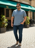 Plus Size Men Denim Blue Polo Collar T-shirt