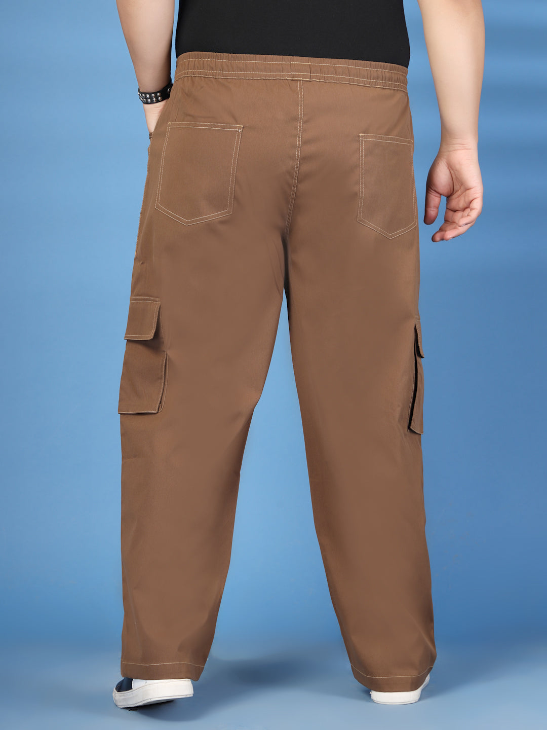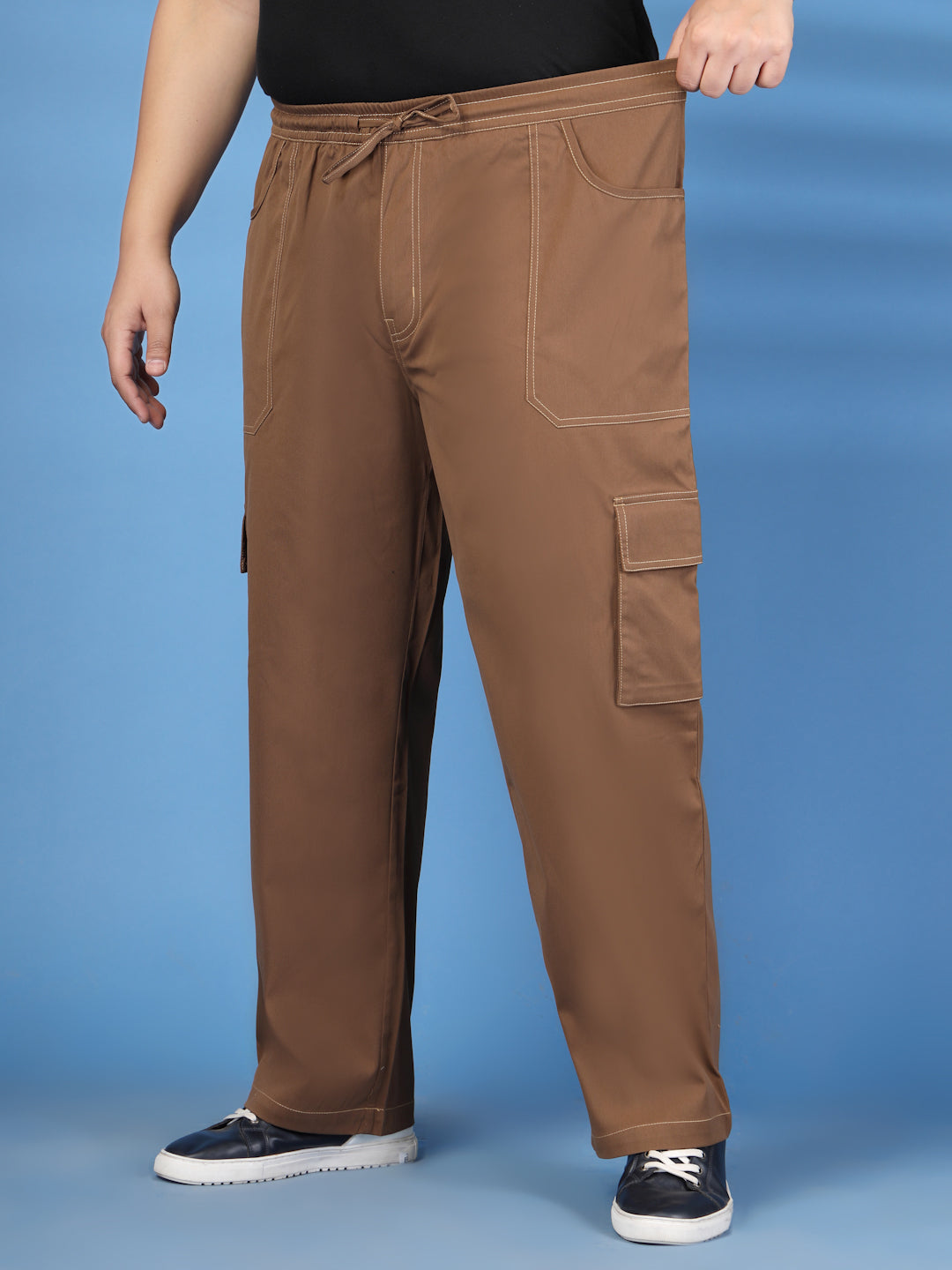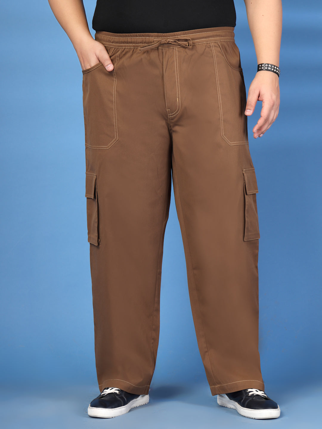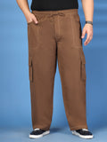 Plus Size Men Self-Checked Pure Cotton Relaxed Fit Cargos