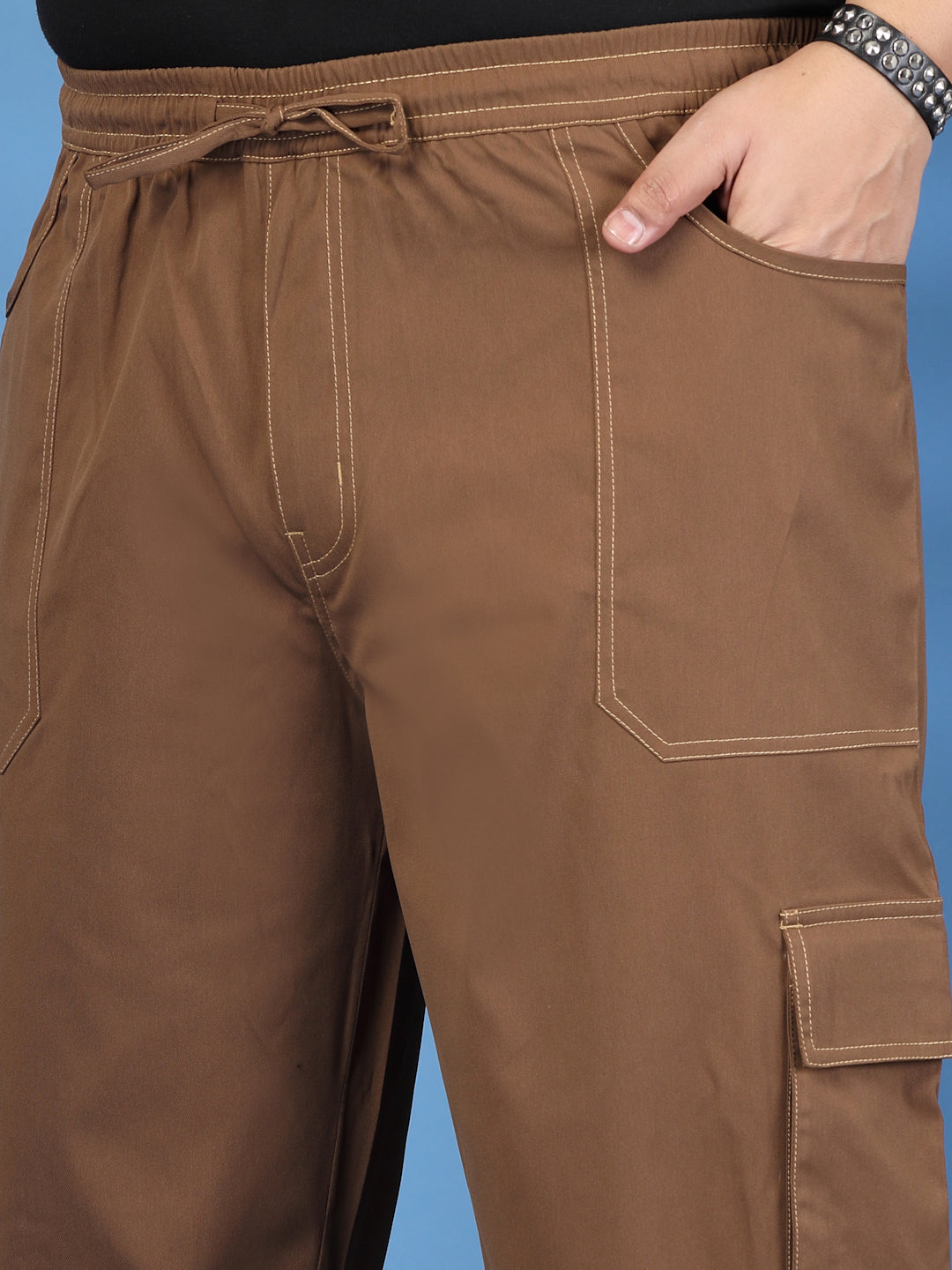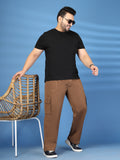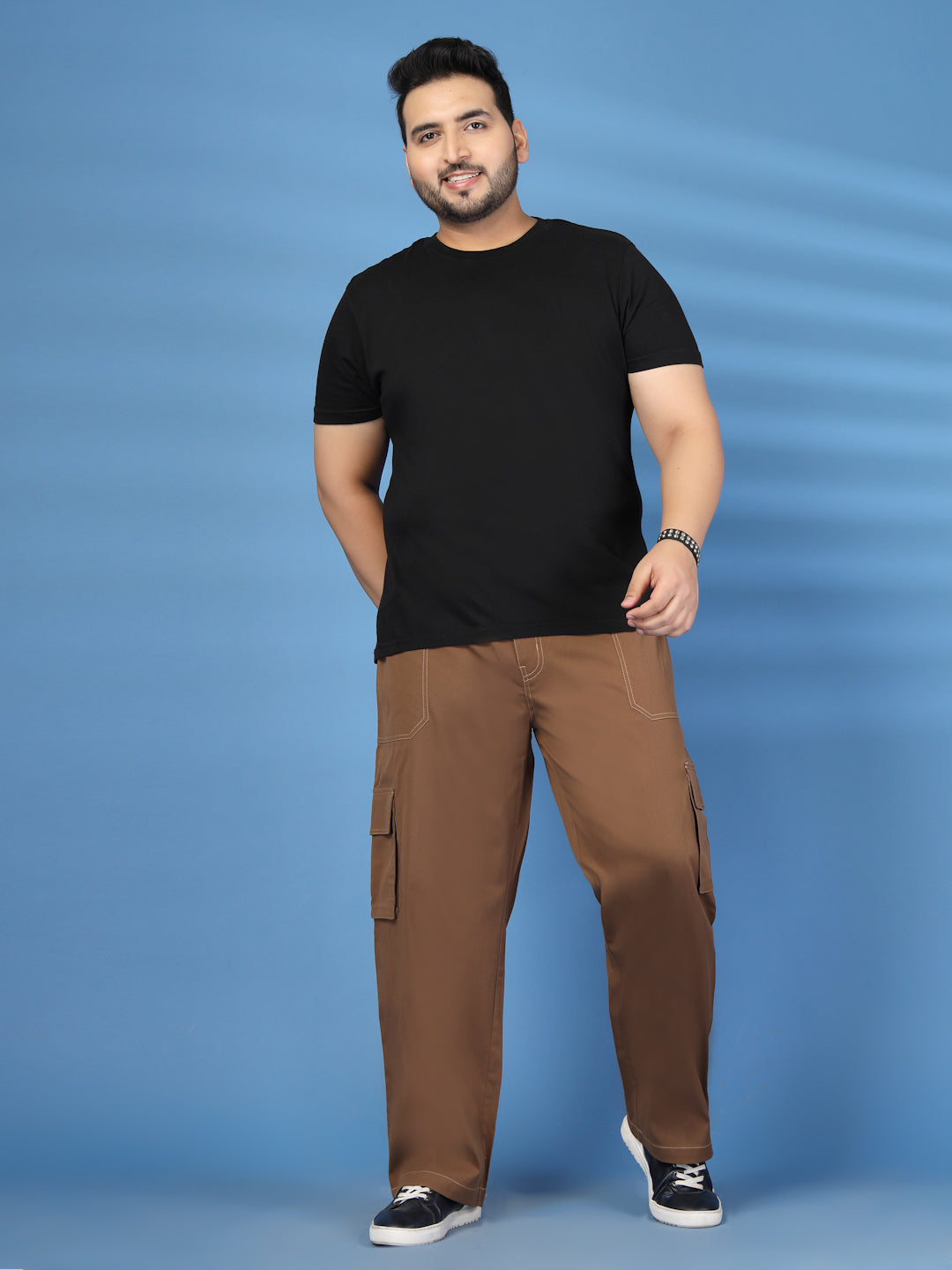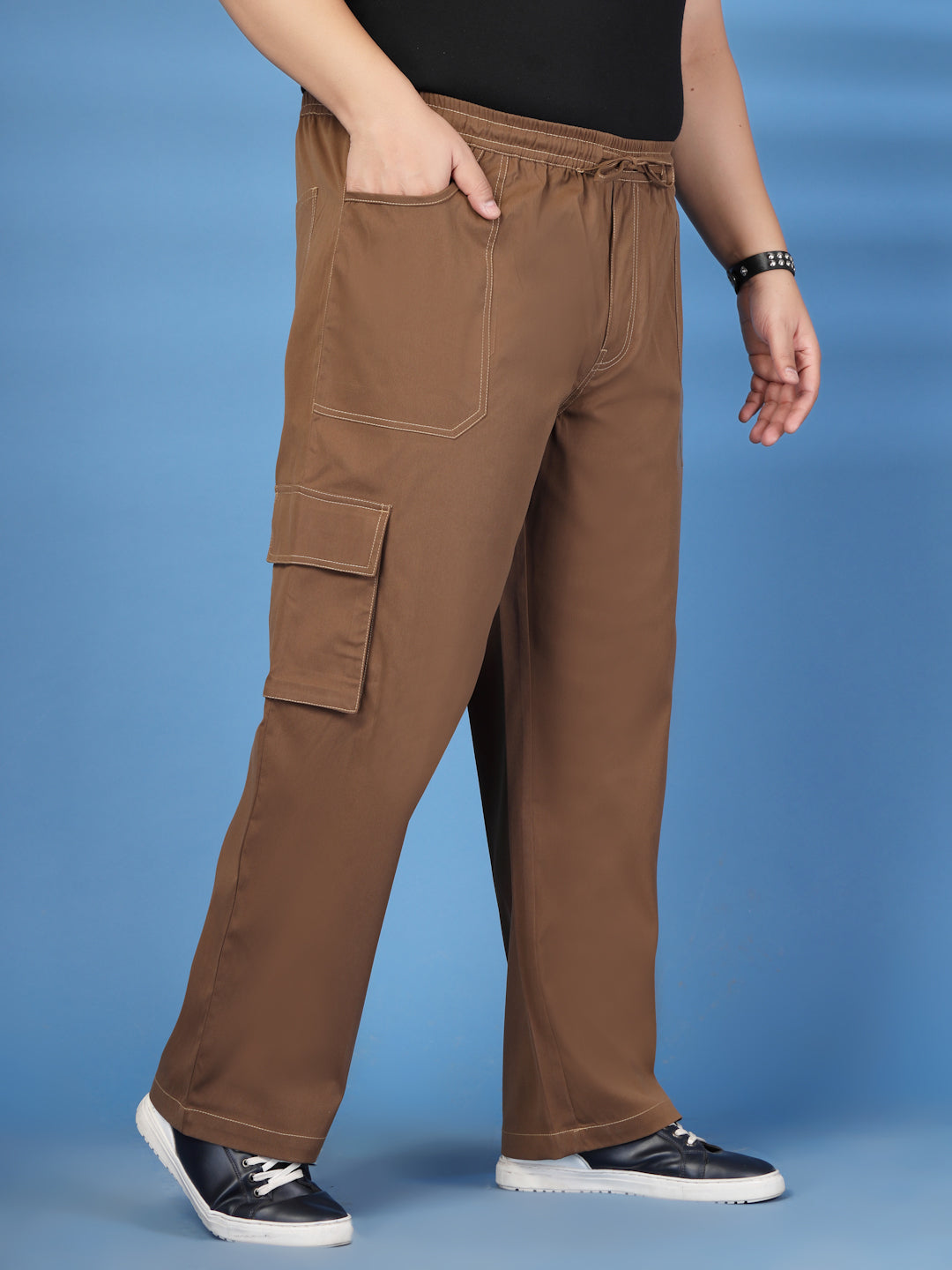 Plus Size Men Self-Checked Pure Cotton Relaxed Fit Cargos
