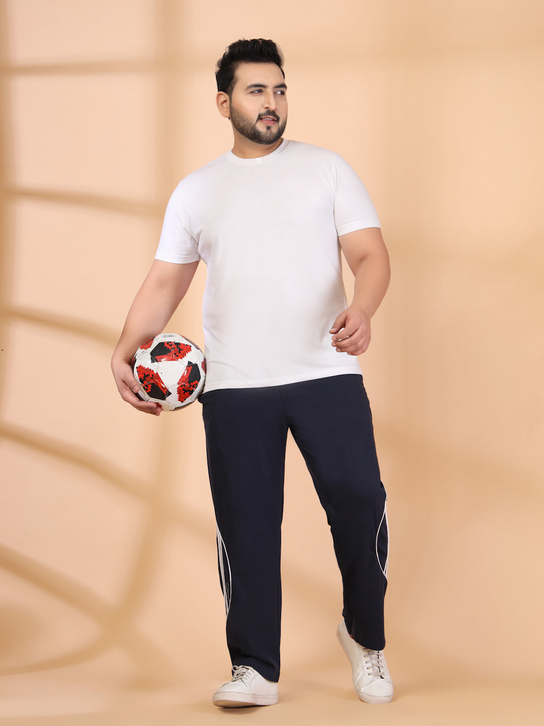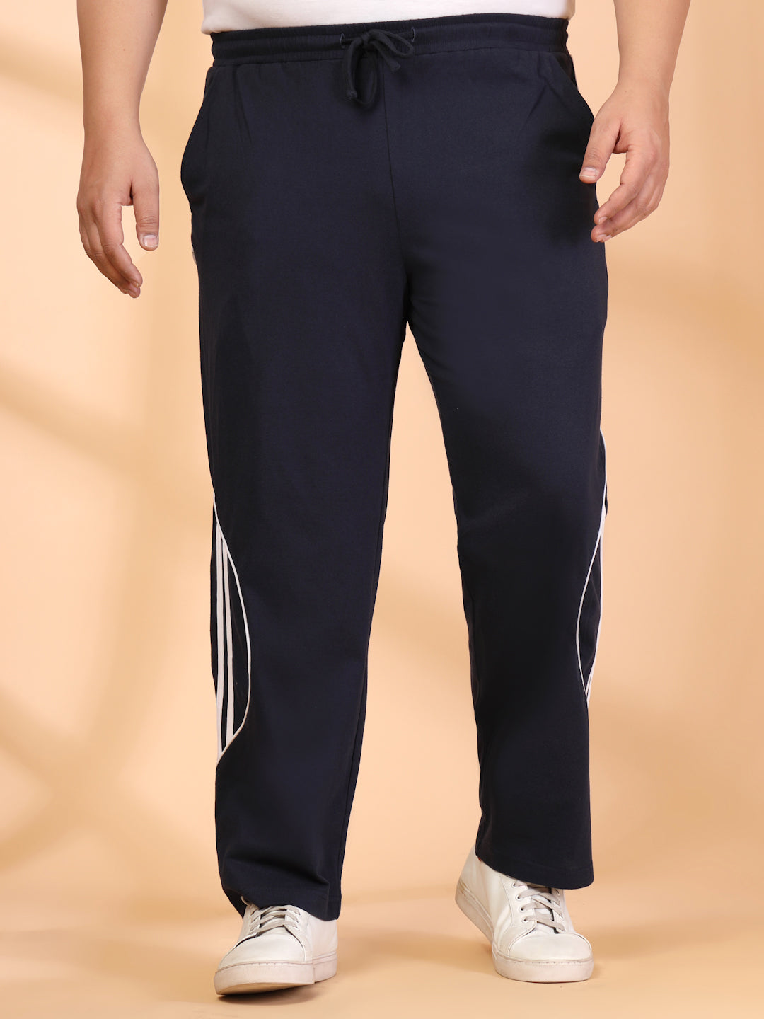 Plus Size Men Side Striped Mid-Rise Track Pants