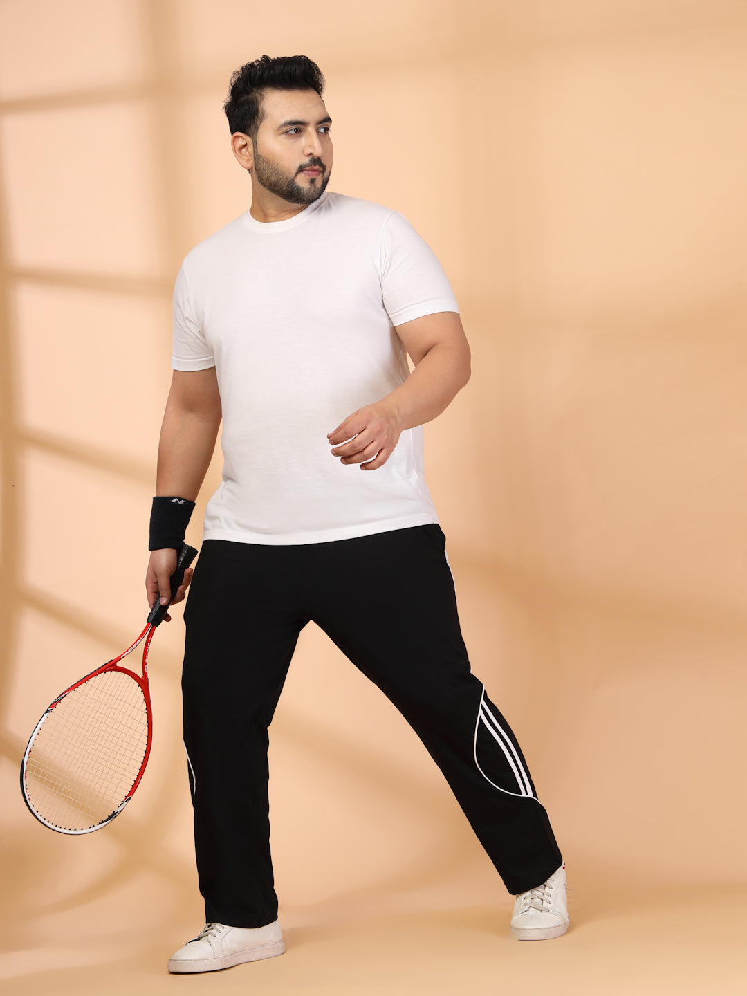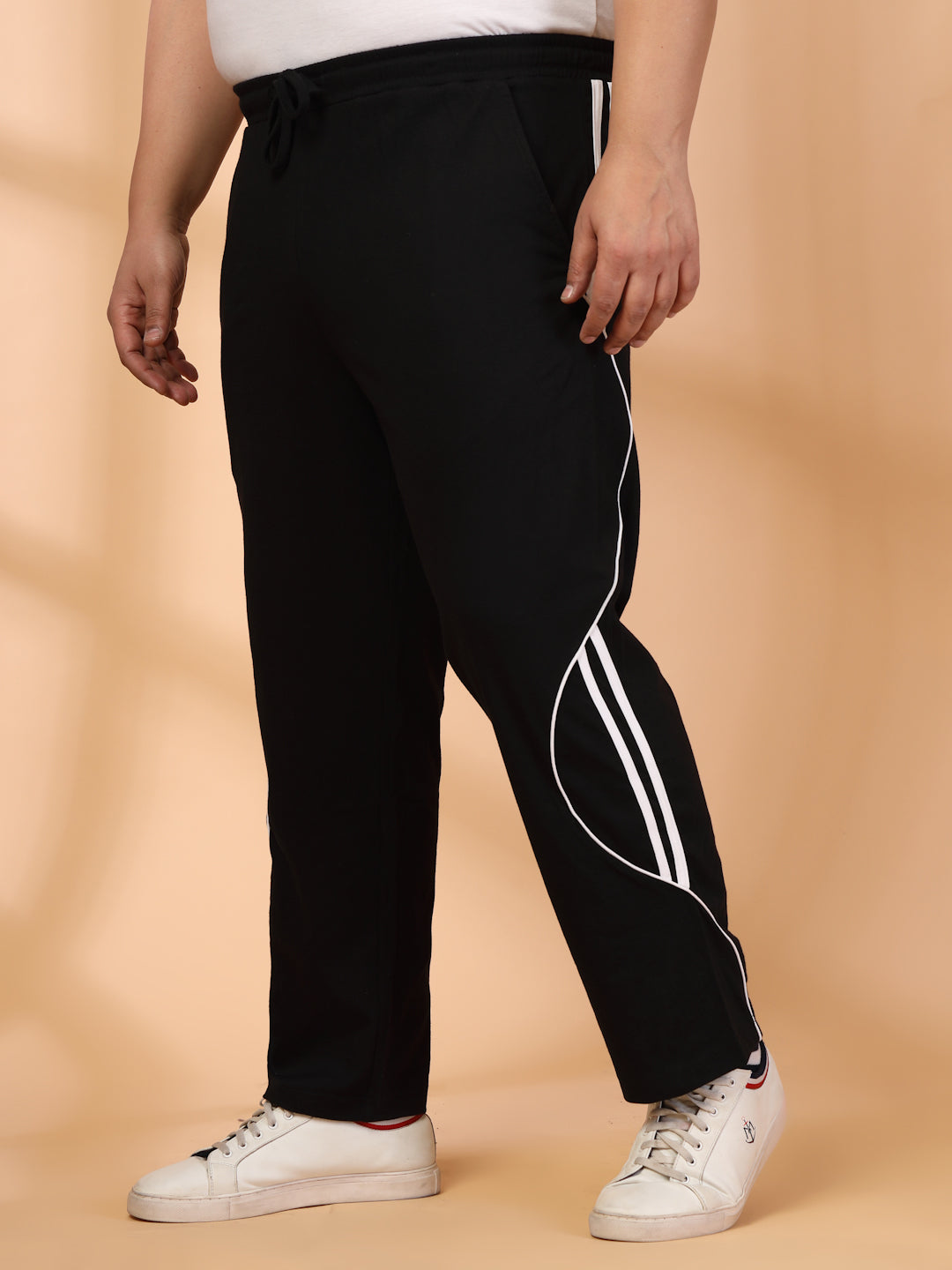 Plus Size Men Side Striped Mid-Rise Track Pants