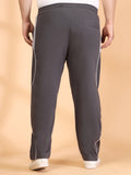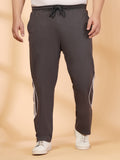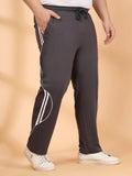 Charcoal solid regular-fit mid-rise track pants with side striped detail, has an elasticated waistband with drawstring closure and 3 pockets