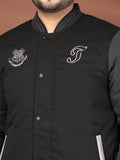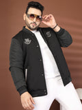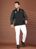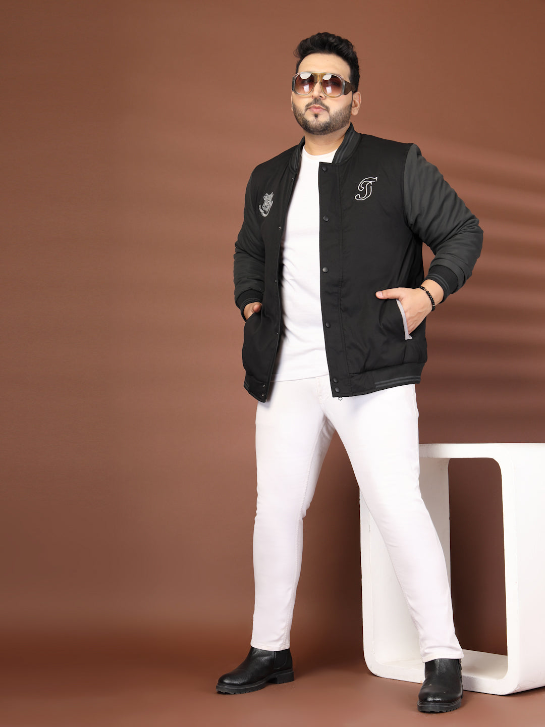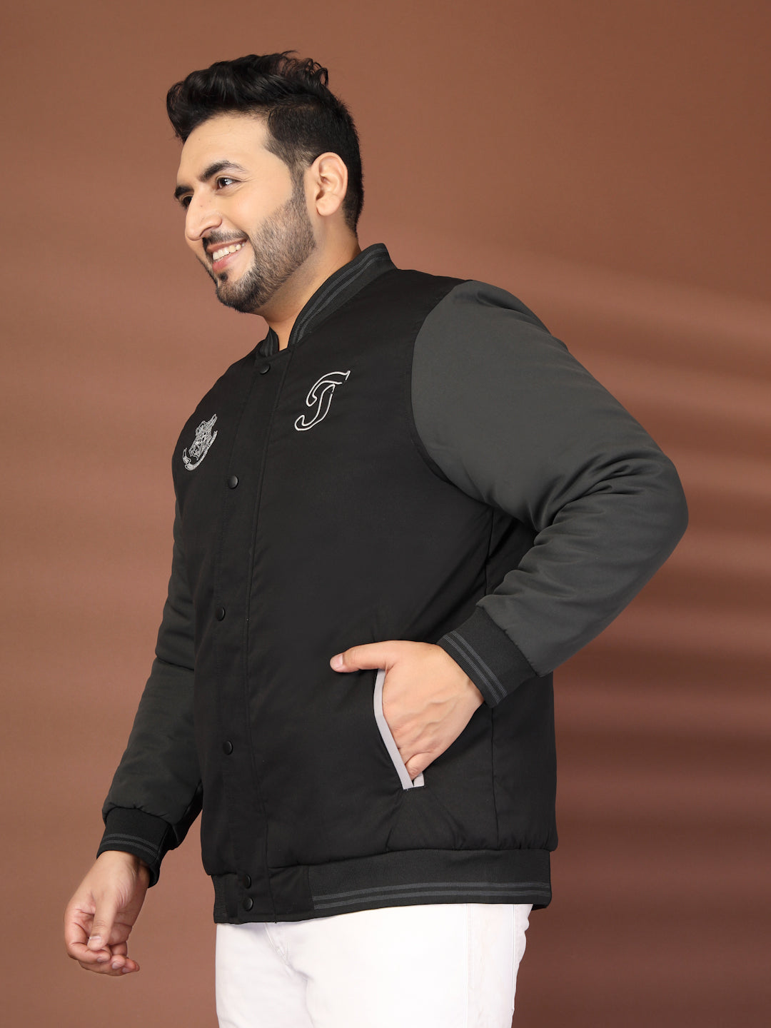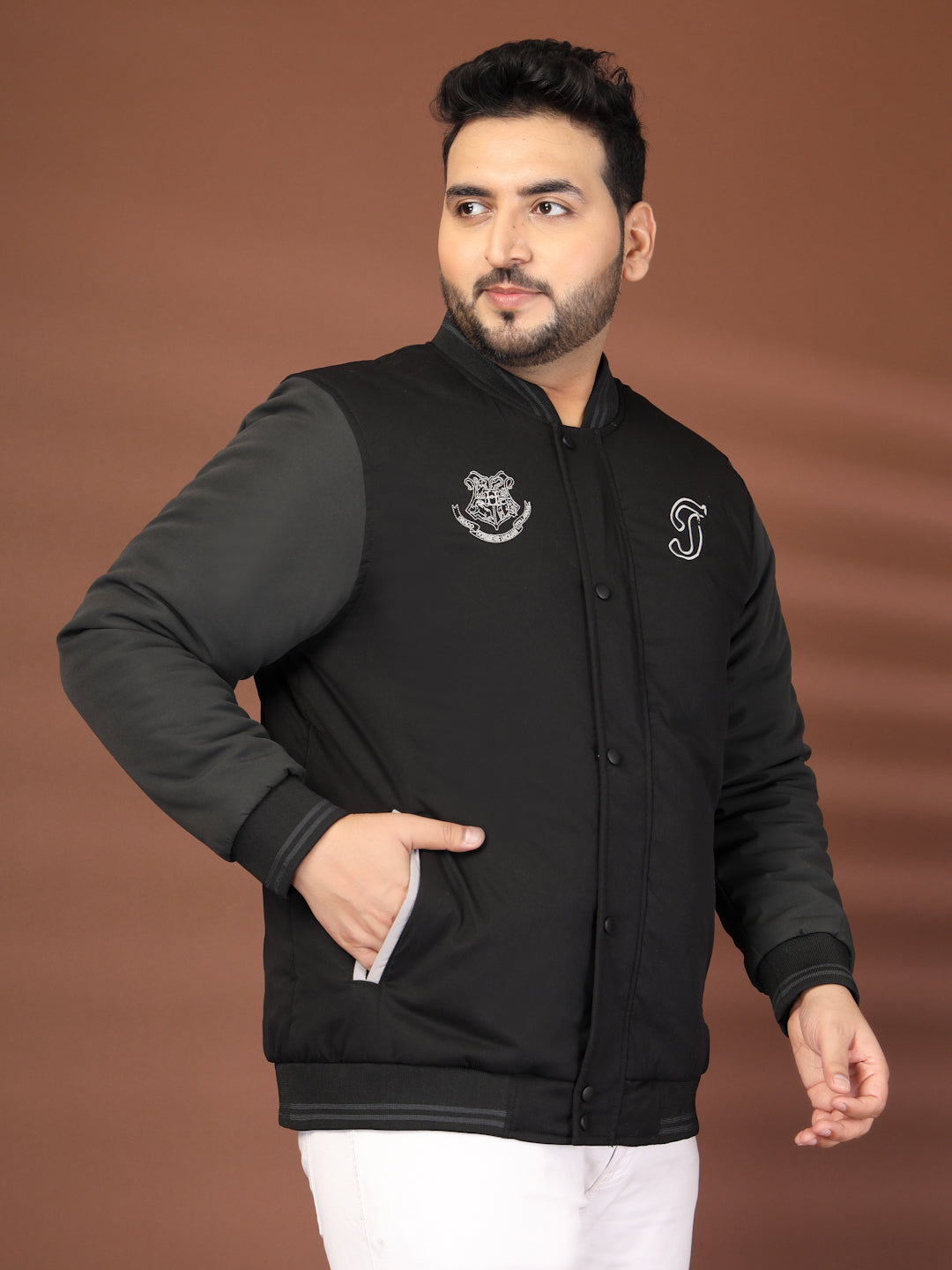 Plus Size Men Stand Collar Graphic Printed Varsity Jacket
