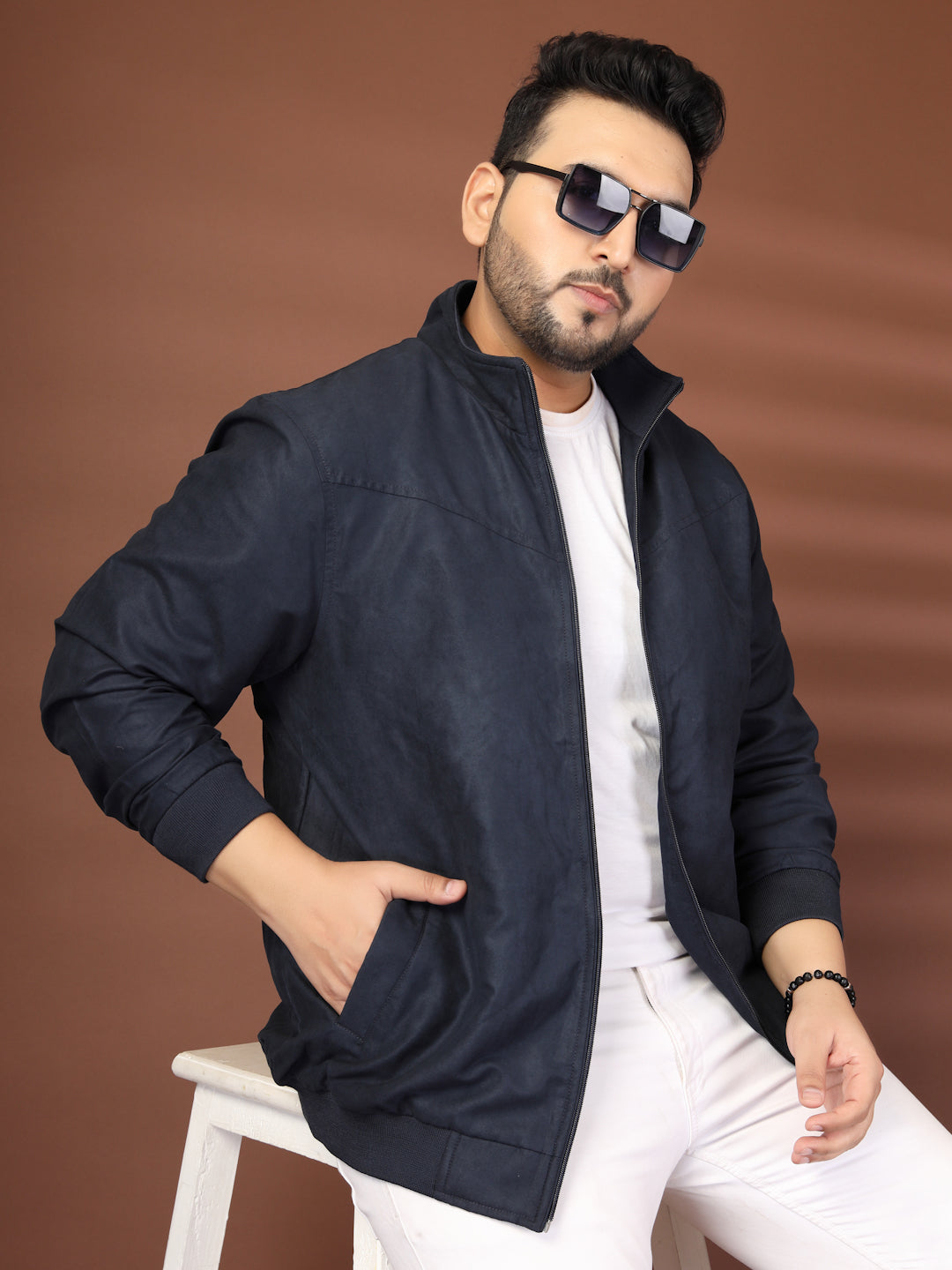 Navy blue Casual Bomber jacket for men