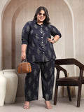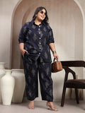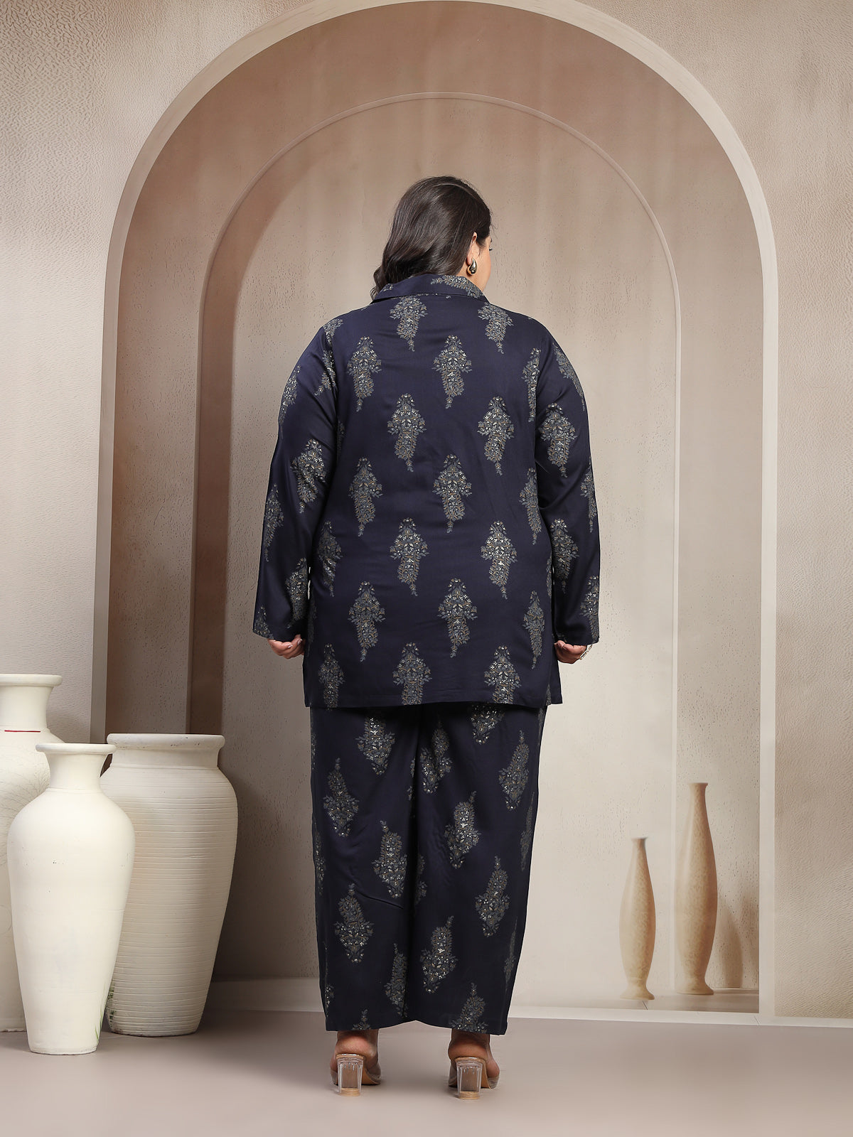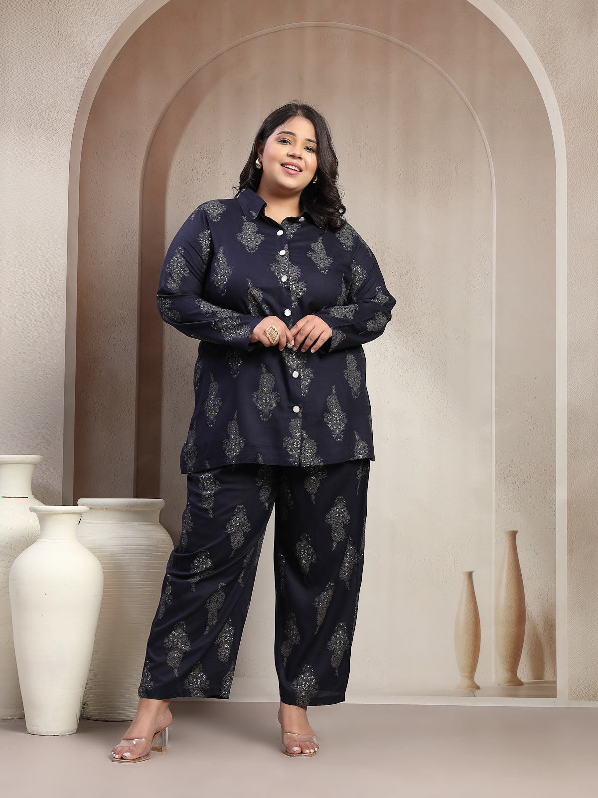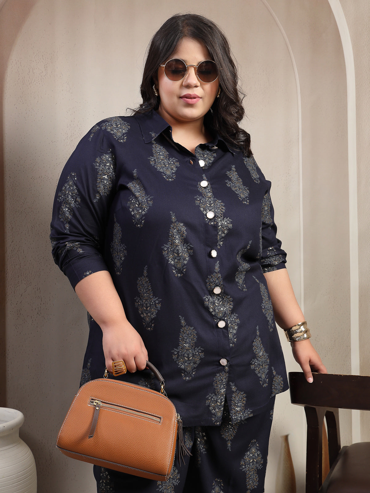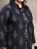 Navy blue printed shirt, has shirt collar, Regular sleeves