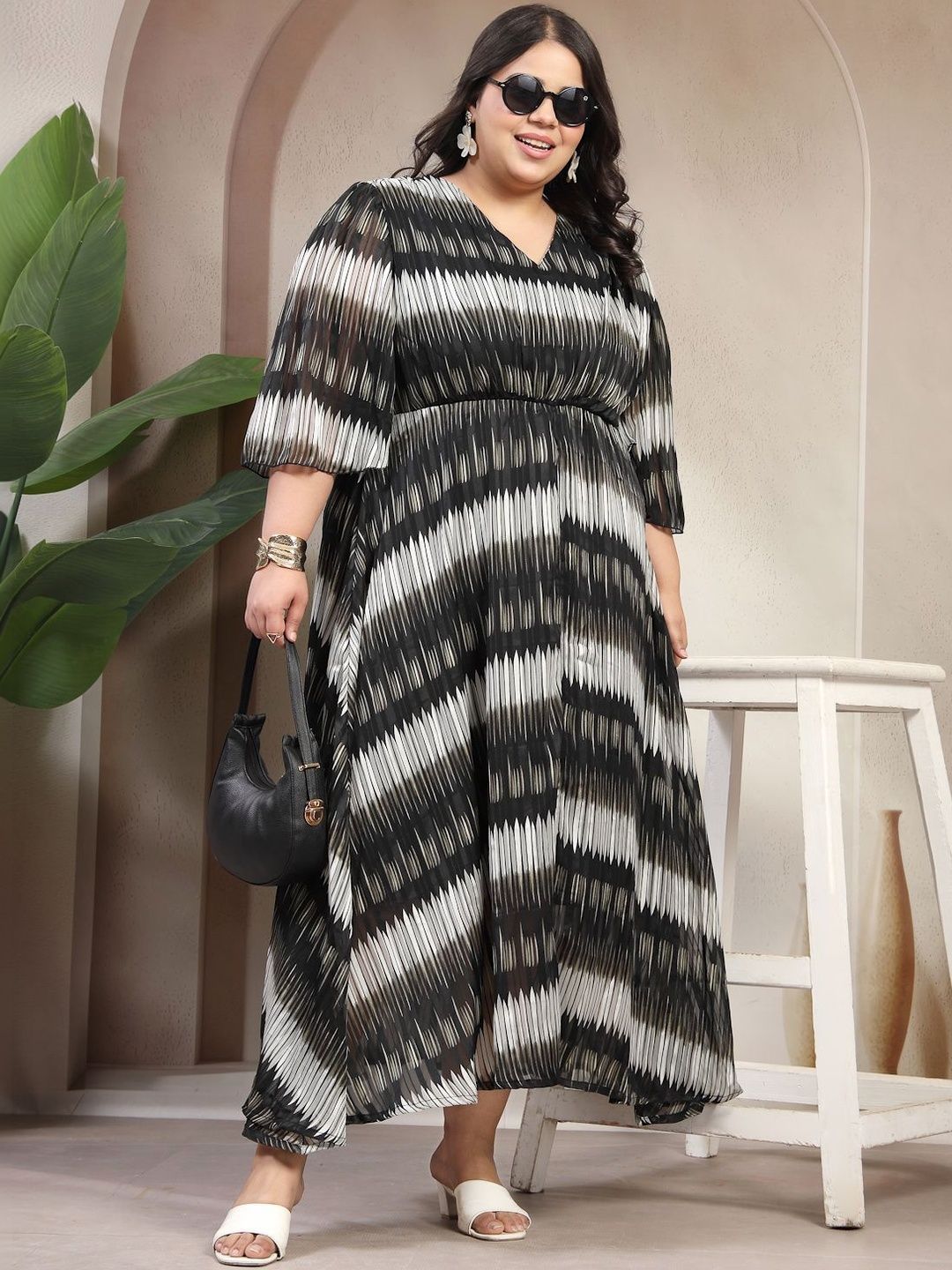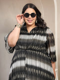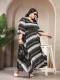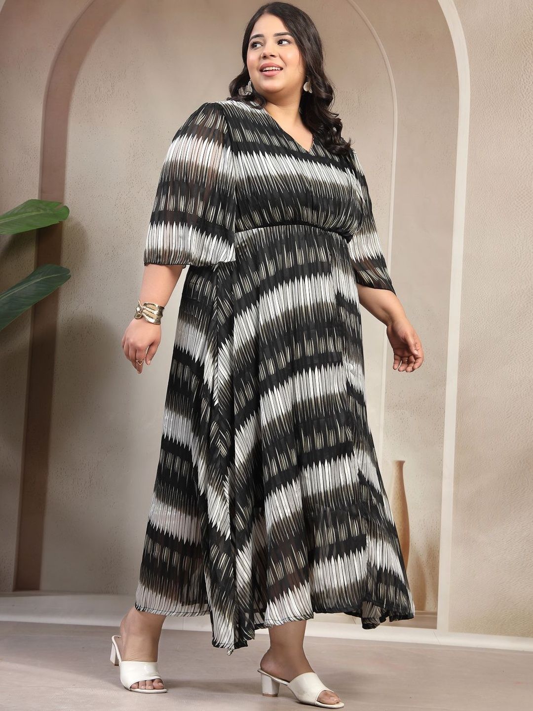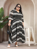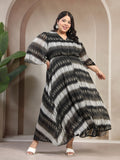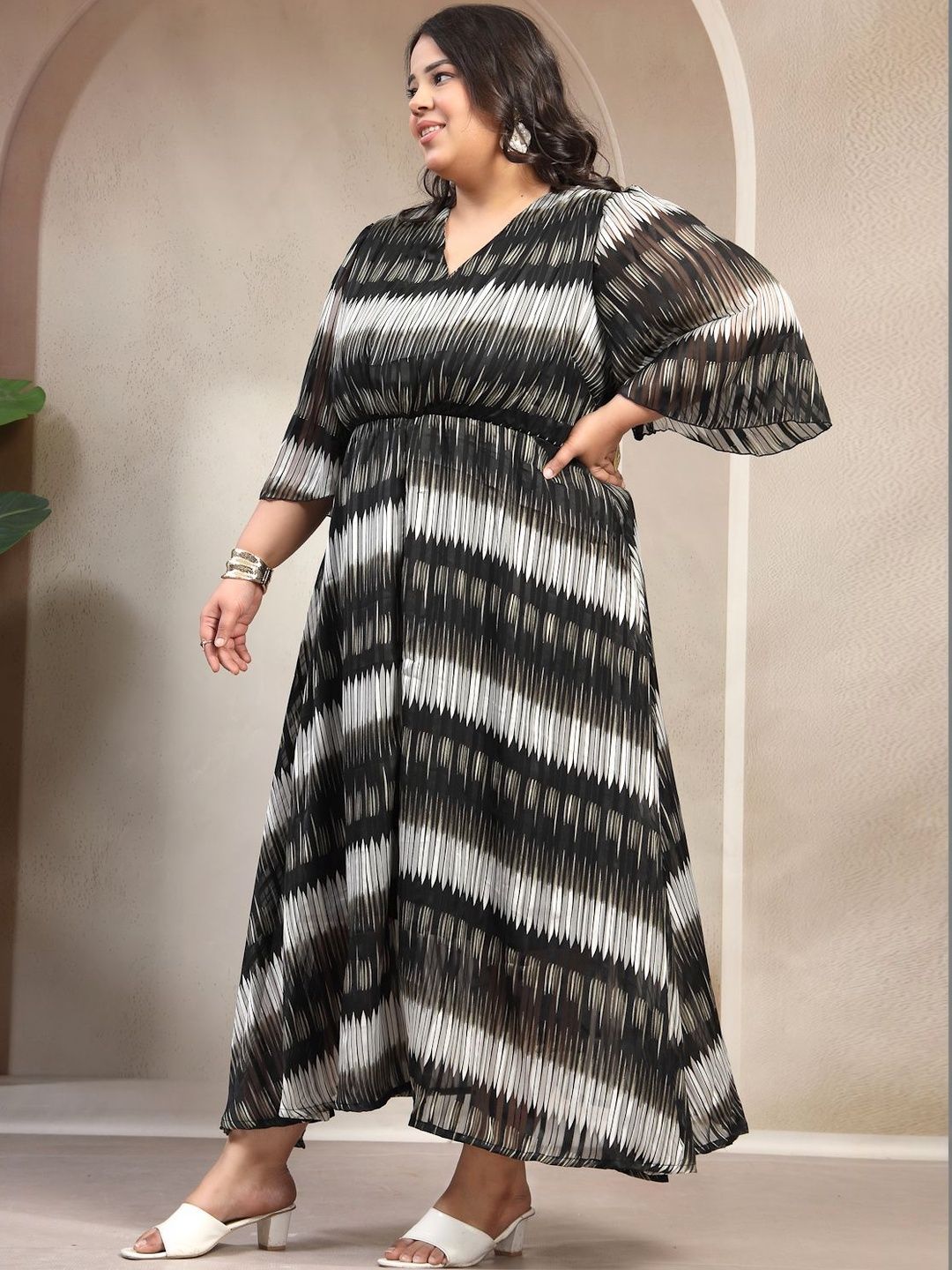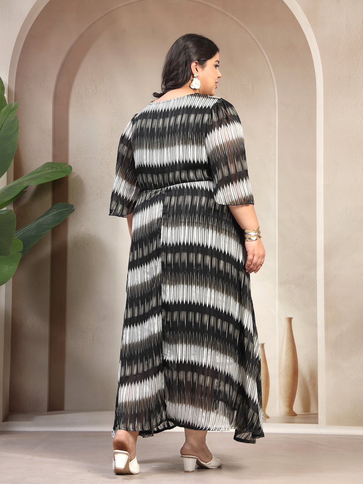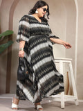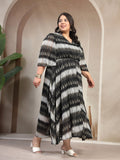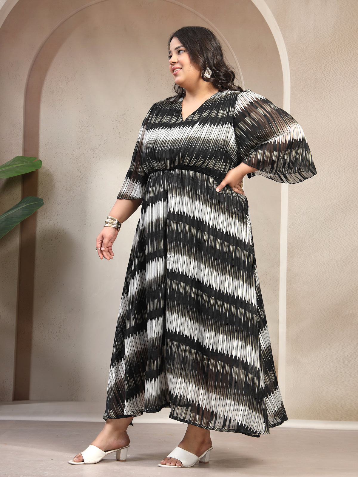 Plus Size Printed Flared Sleeve Fit & Flare Maxi Dress