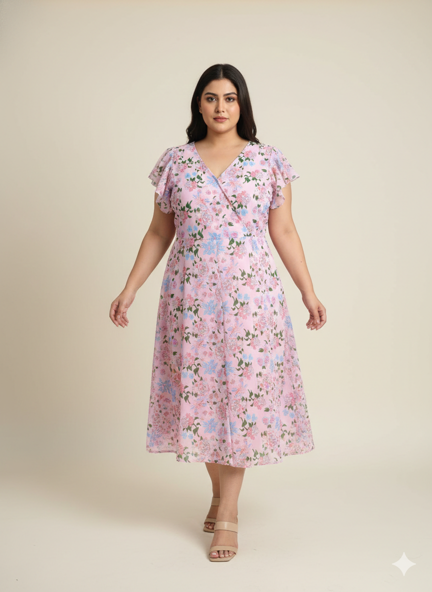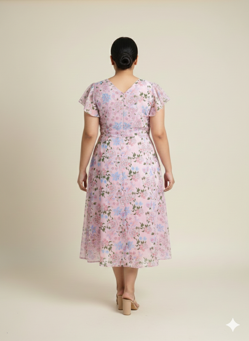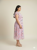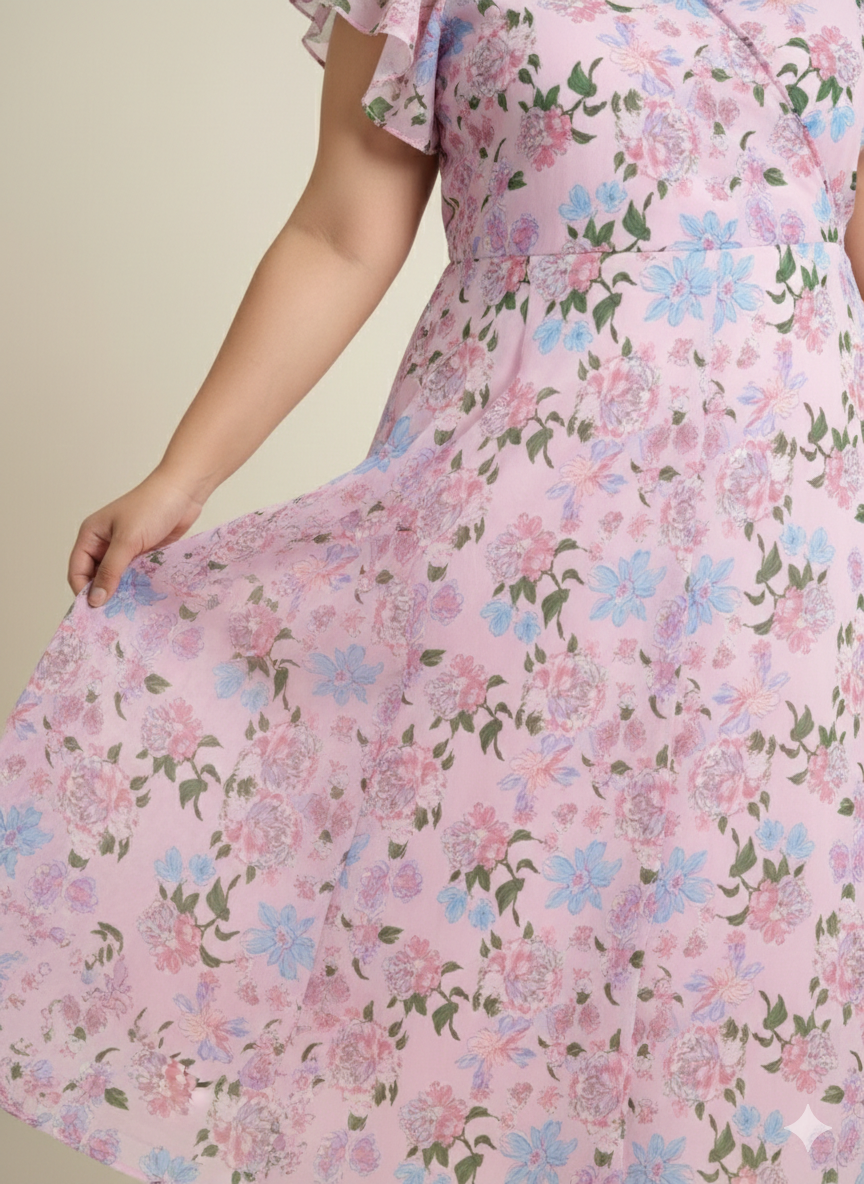 Plus Size Printed Flutter Sleeves A-Line Maxi Dress