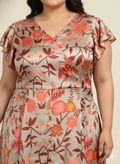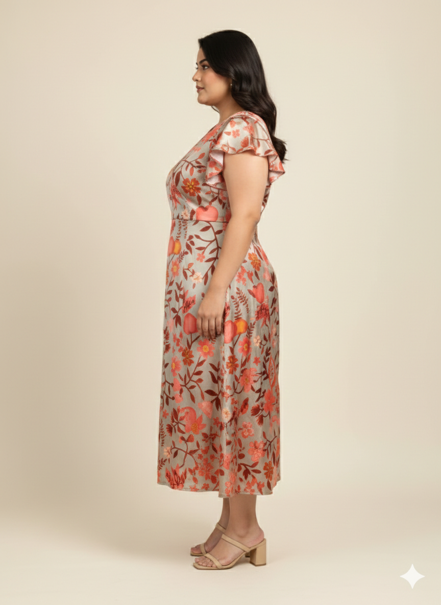 Plus Size Printed Flutter Sleeves A-Line Maxi Dress