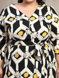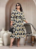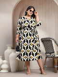 Plus Size Printed Midi Fit and Flare Dress