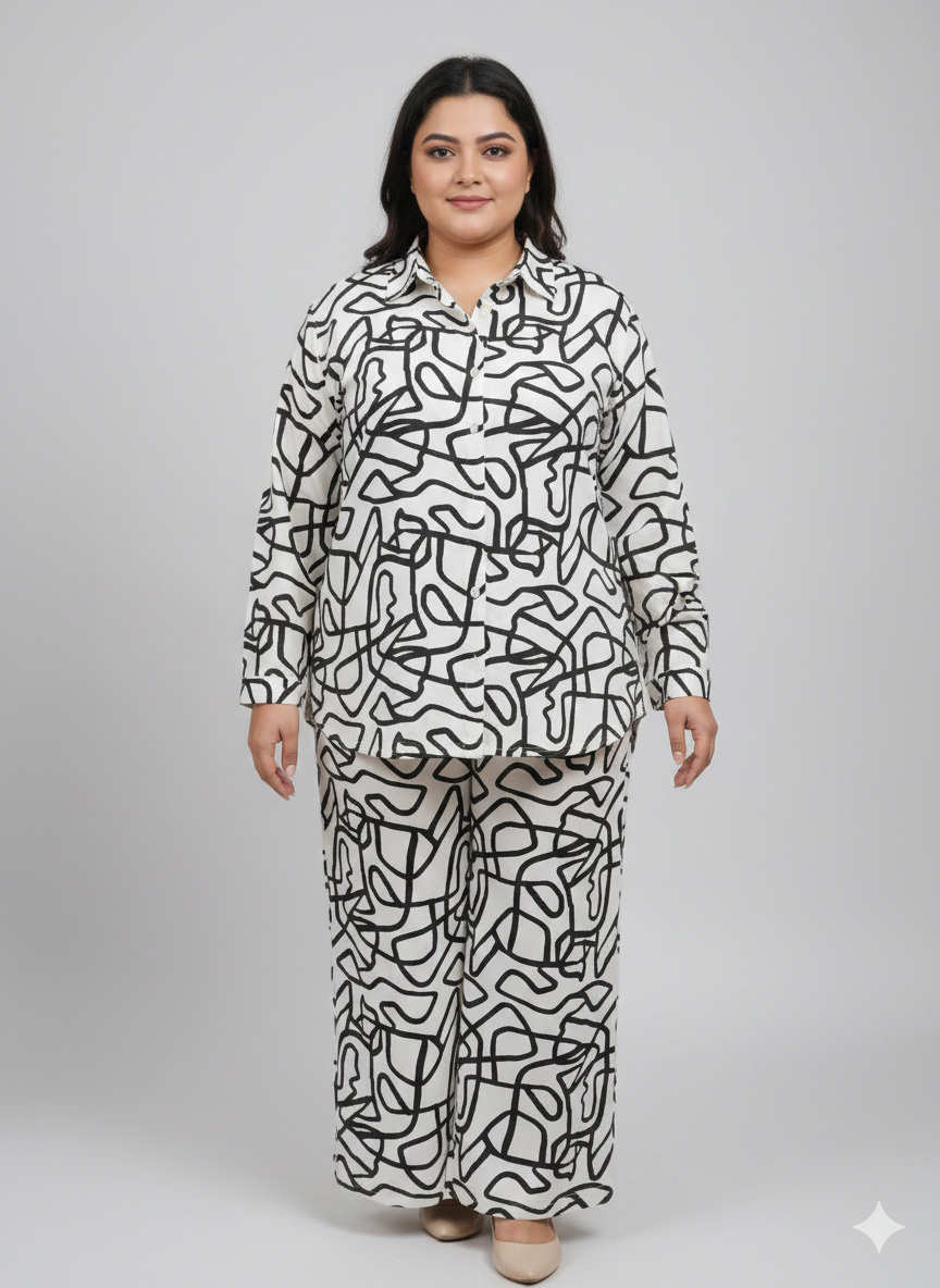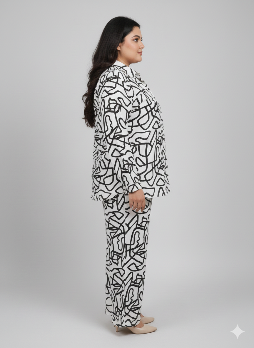 Plus Size Printed Shirt Collar With Trouser
