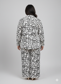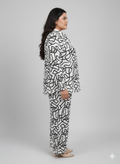 Black-White printed shirt has a shirt collar and long sleeves, secured with button closure