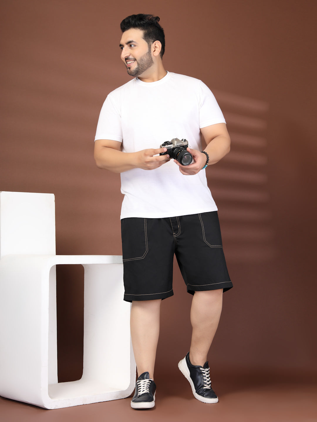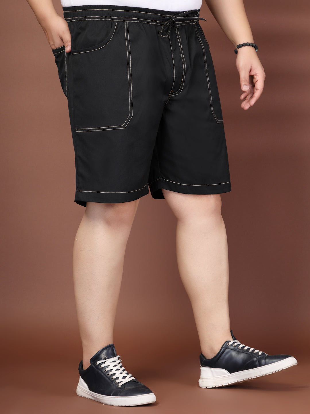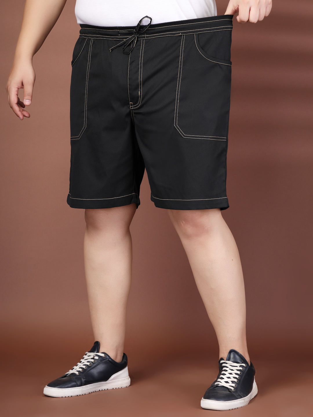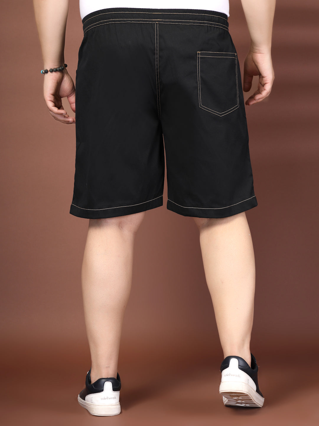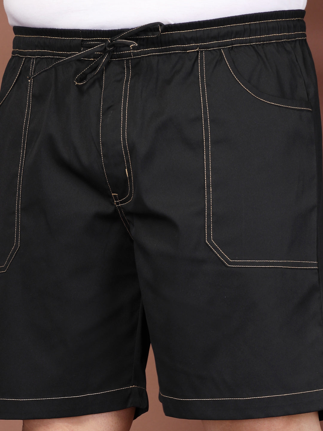 Black solid mid-rise regular shorts, has 2 pockets, drawstring closure