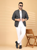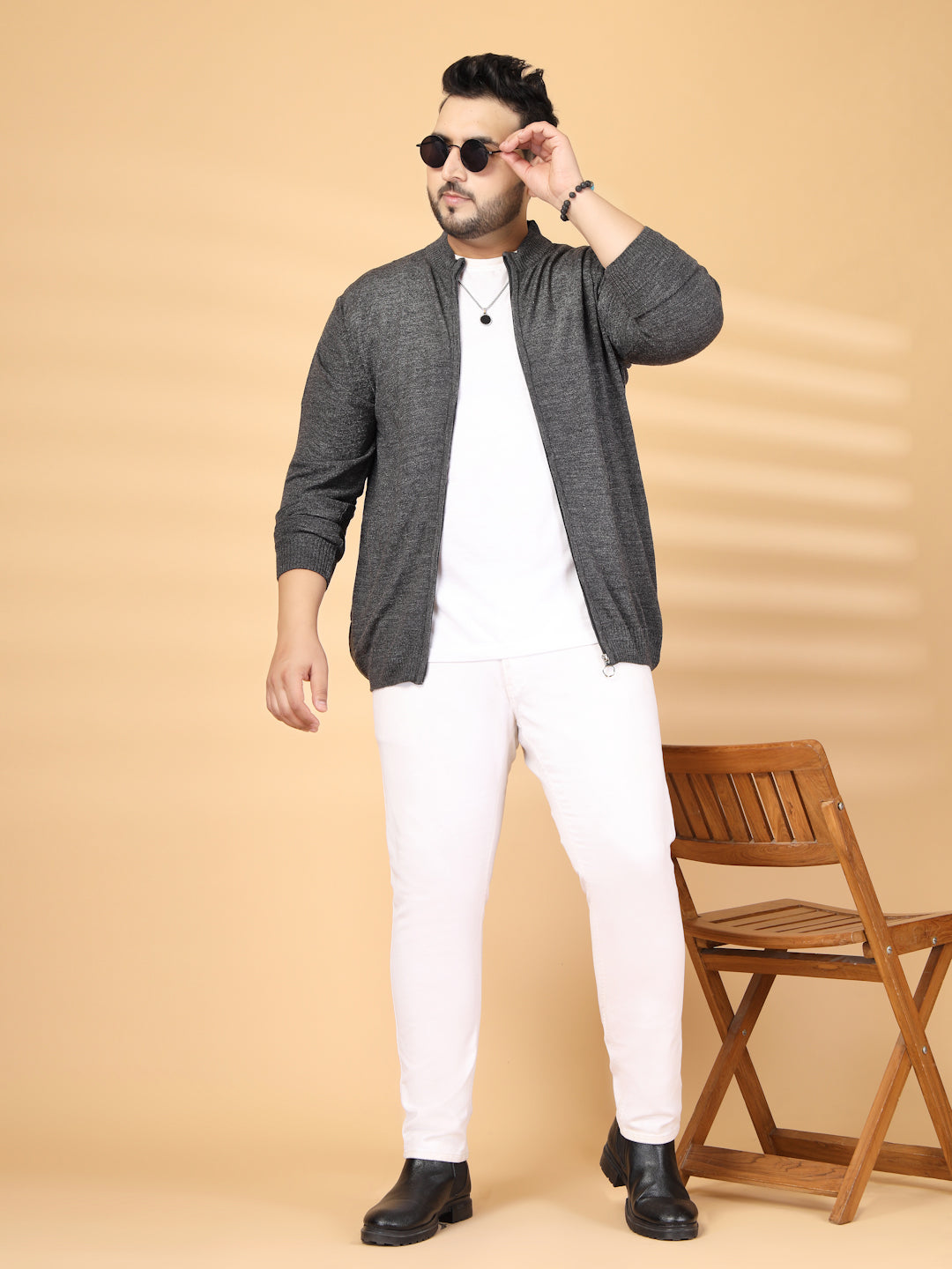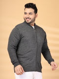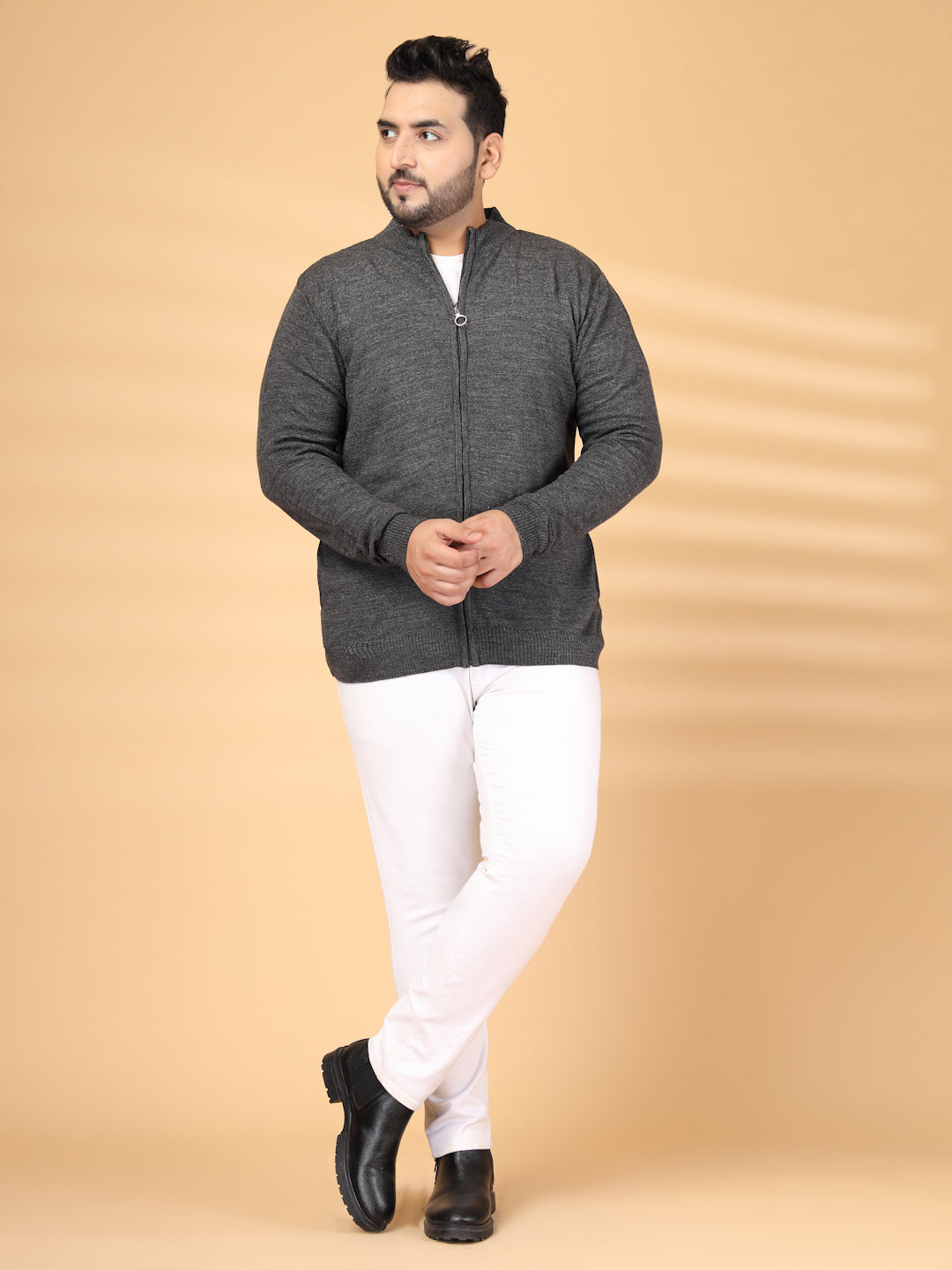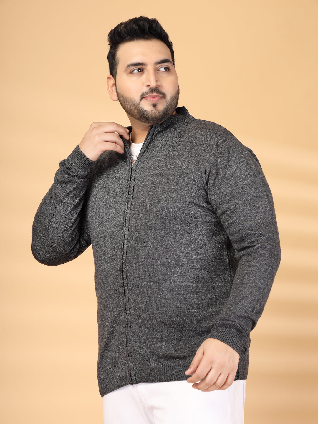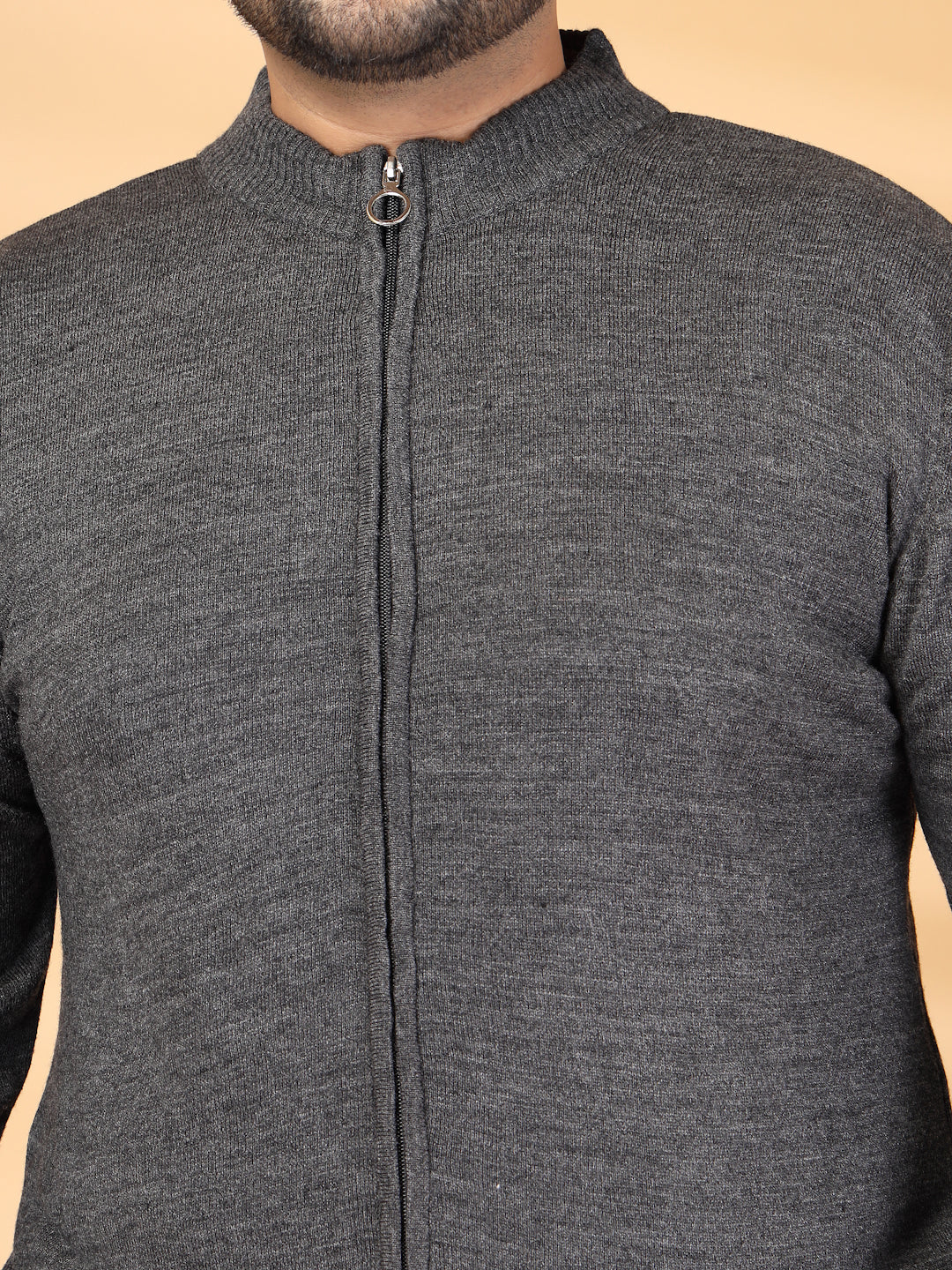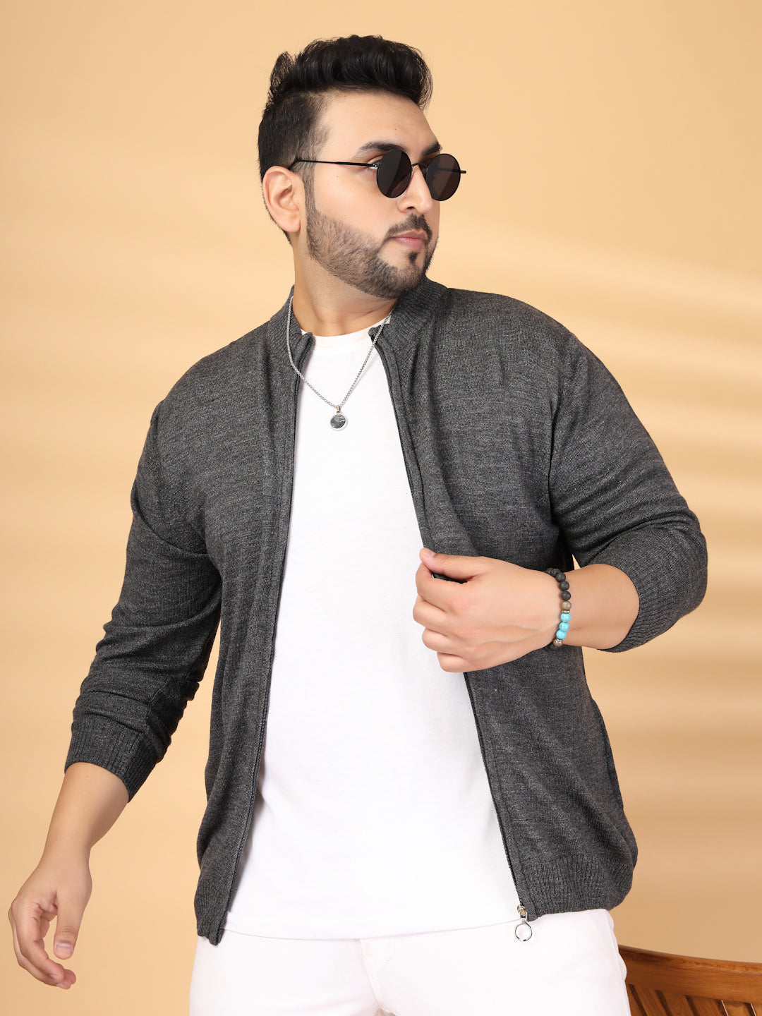 Grey solid zip detail front-open ,has a round neck, long sleeves, zip closure, ribbed hem