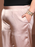 Champagne solid trousers, has an elasticated waistband with slip-on closure