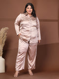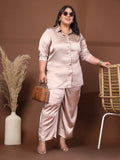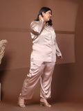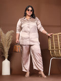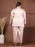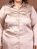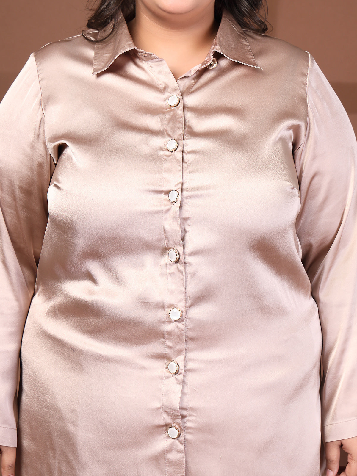 Champagne solid shirt has a shirt collar and long sleeves, secured with button closure