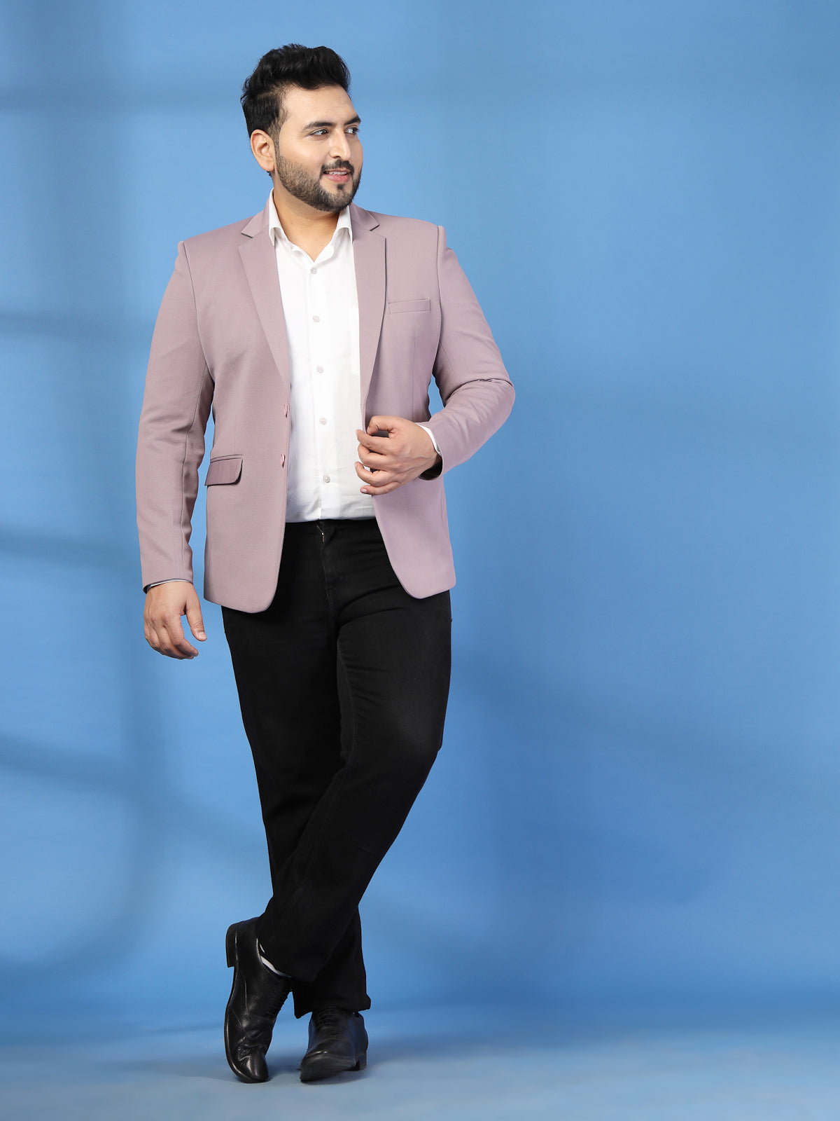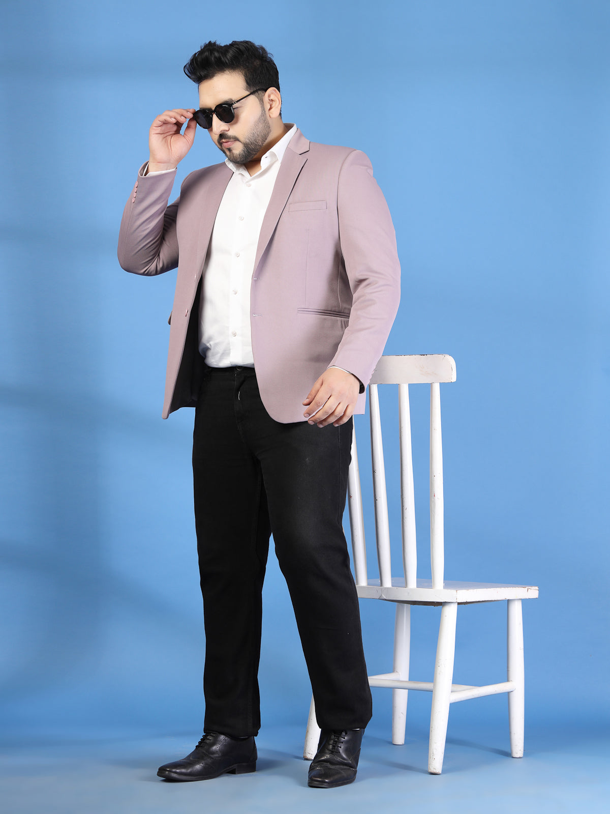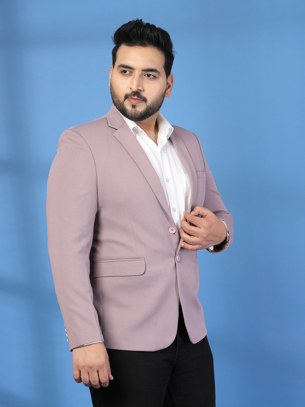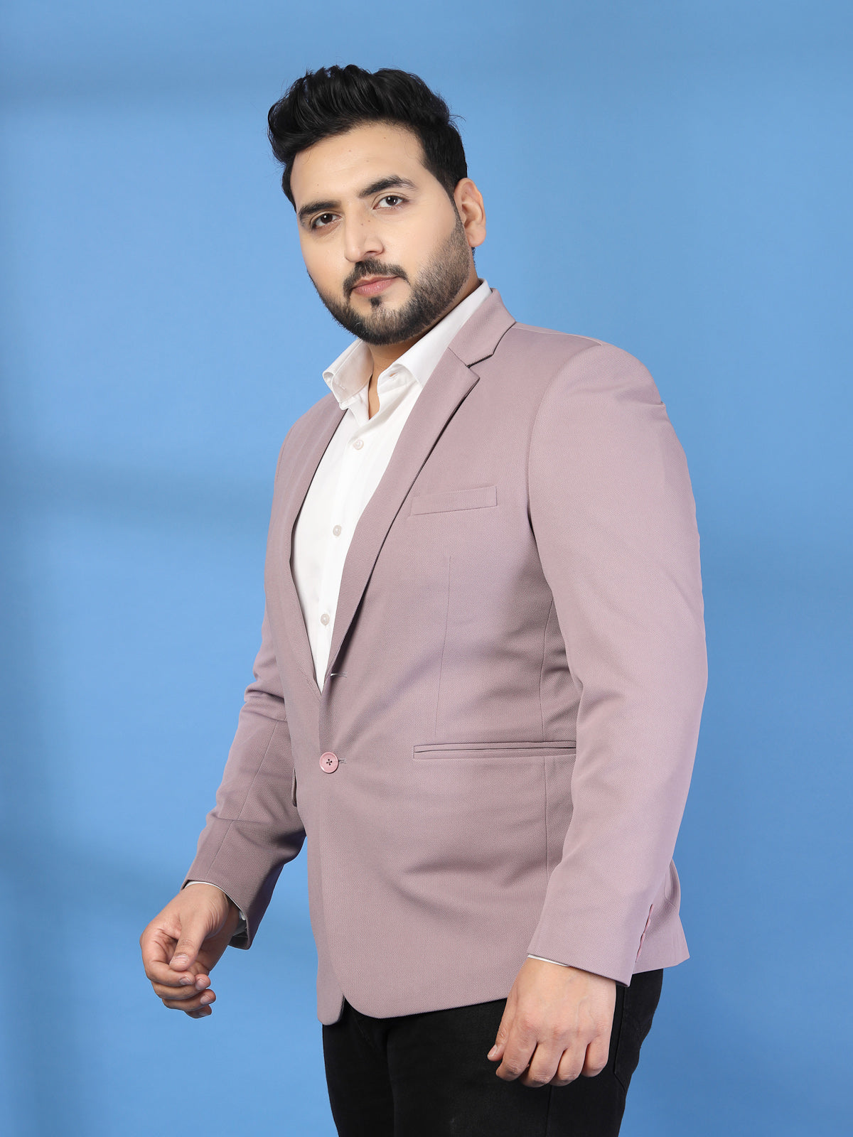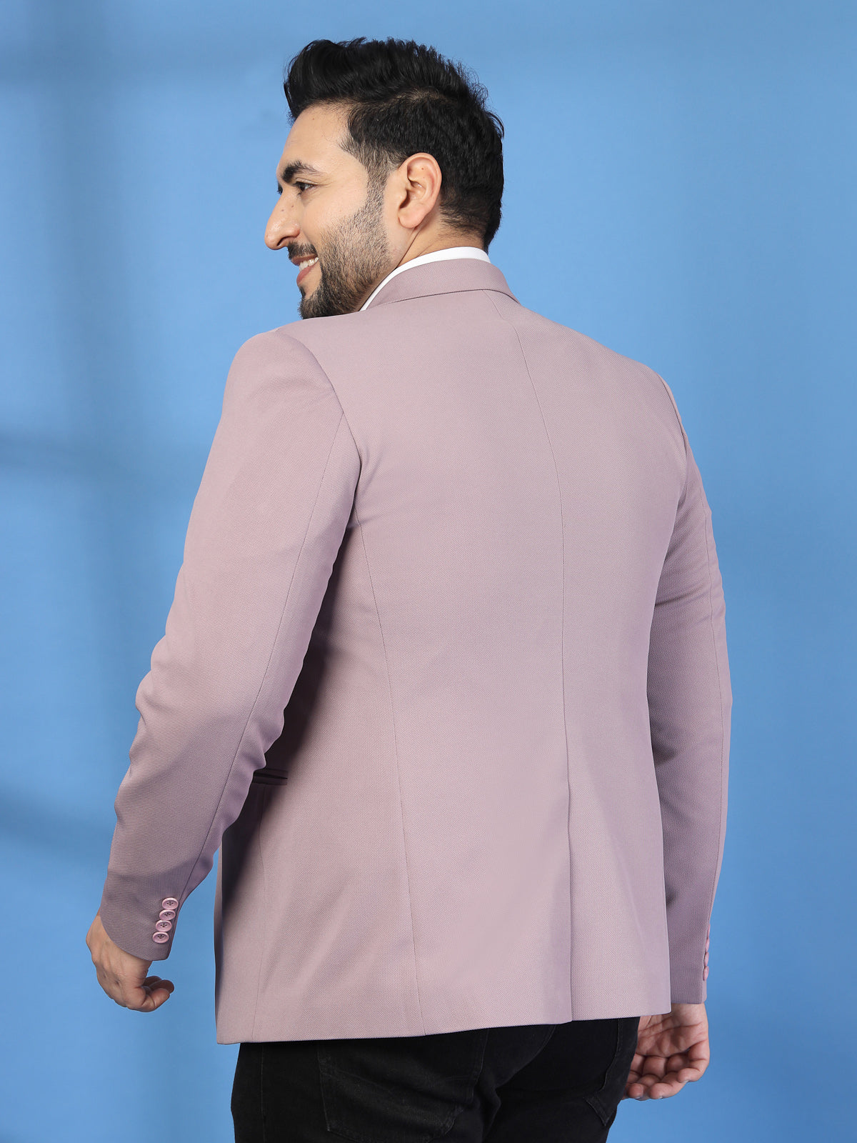 Pink solid formal blazer, has a notched lapel, long sleeves, single-breasted with double button, three welt pockets and a single-vented back hem