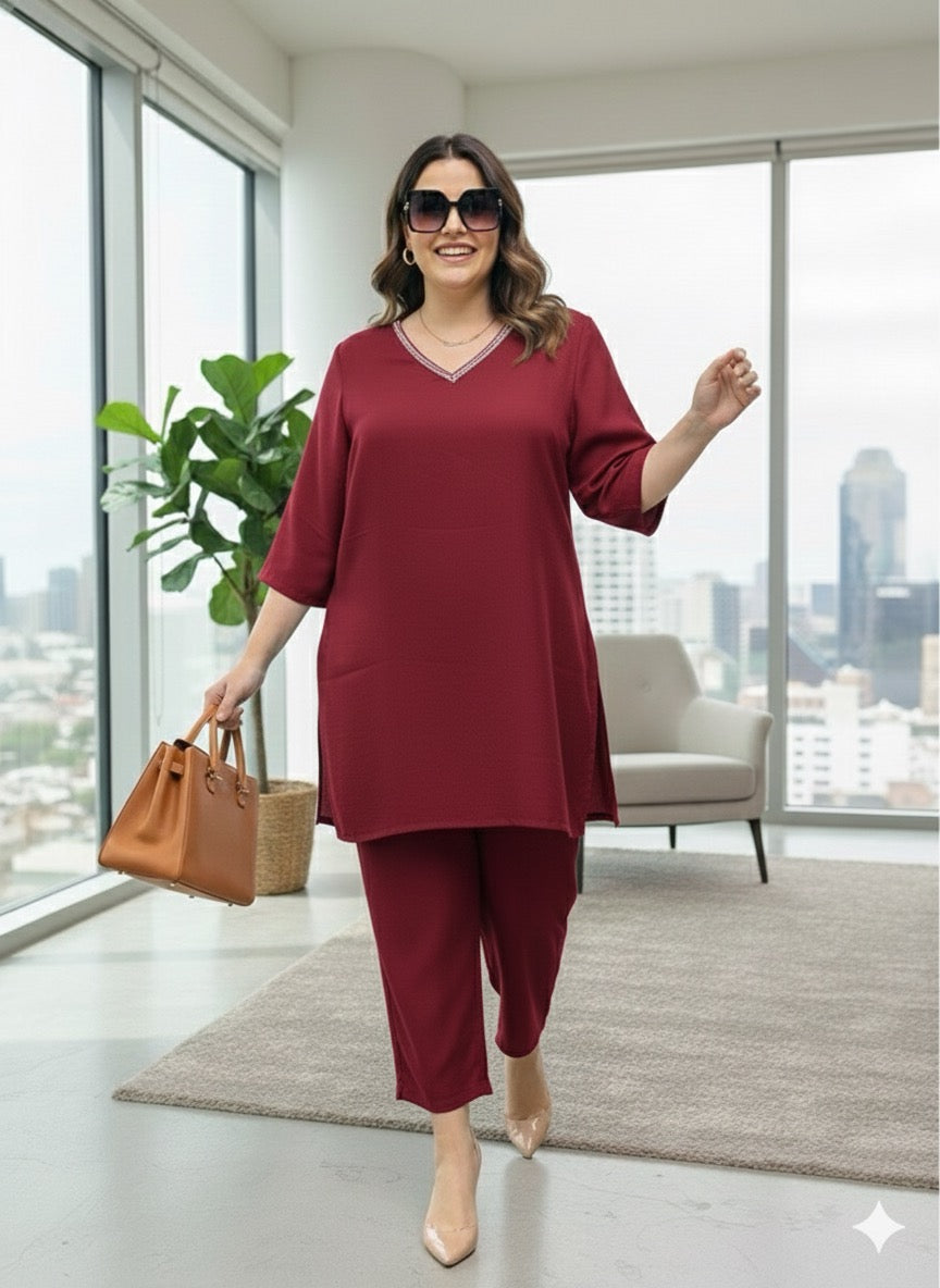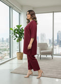 Dive into effortless elegance with our Wine Co-ord Set, designed for the modern woman who values both style and comfort. This ensemble features a relaxed fit,