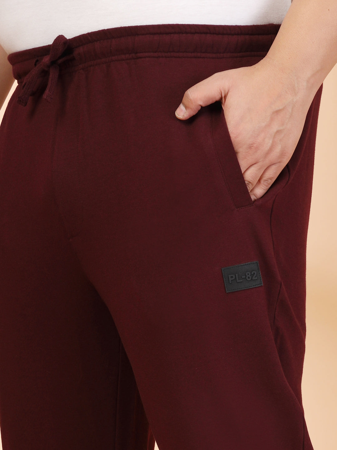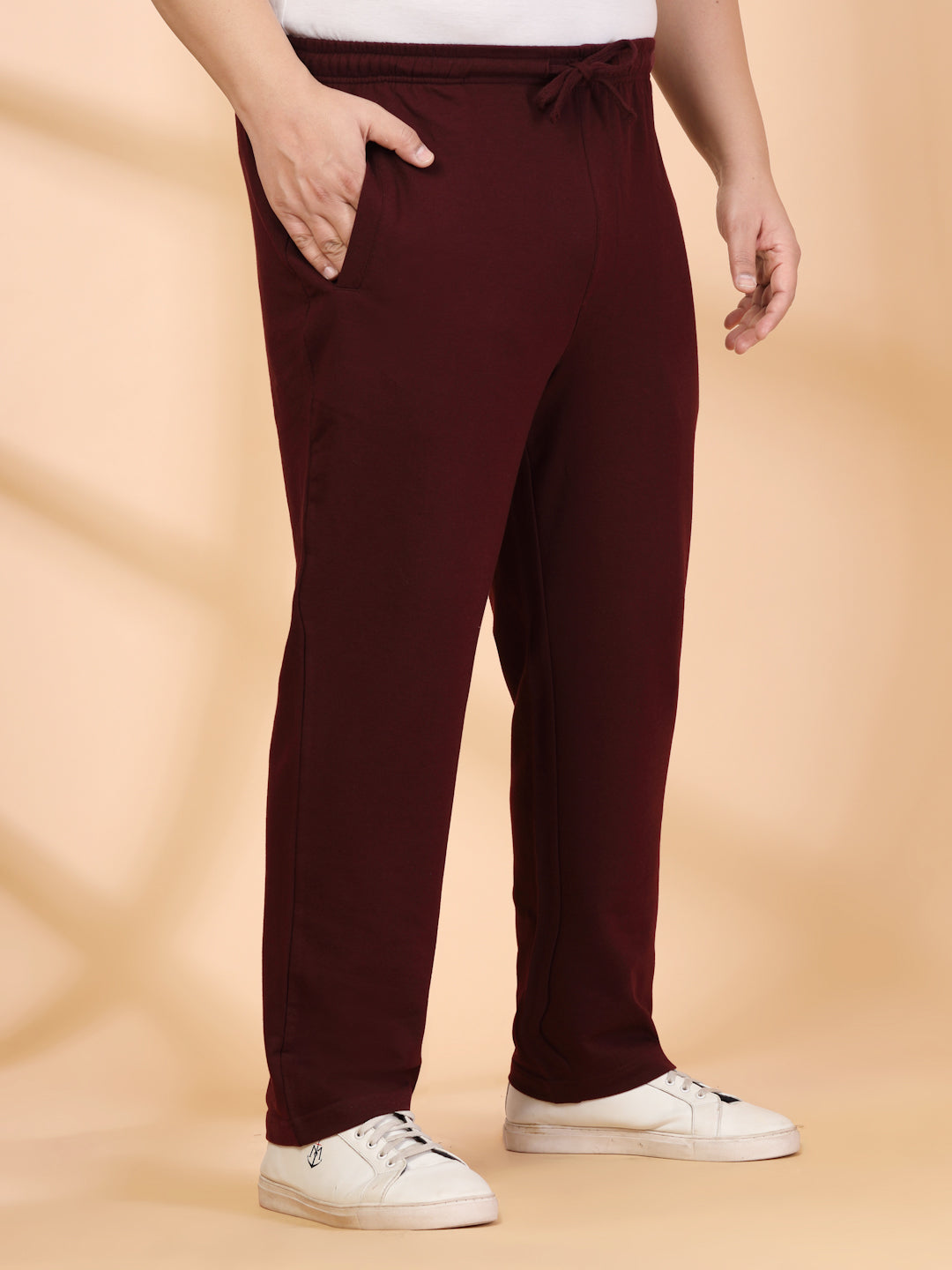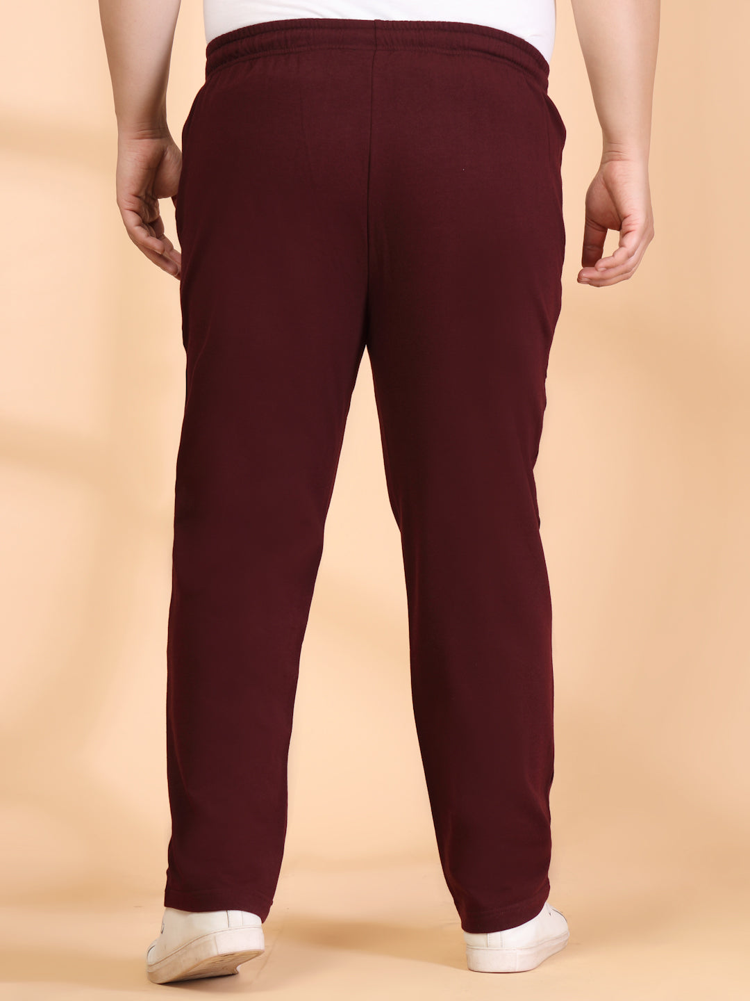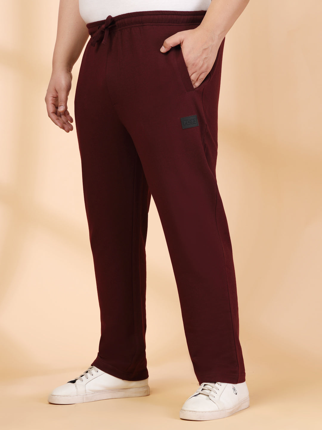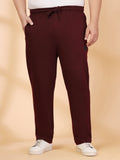 Plus Size Wine Straight Fit Mid-Rise Cotton Track Pants