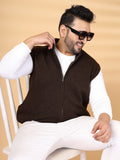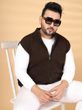 Coffee brown solid zip detail front-open ,has a high neck, na pockets, sleeveless, zip closure, straight hem