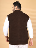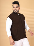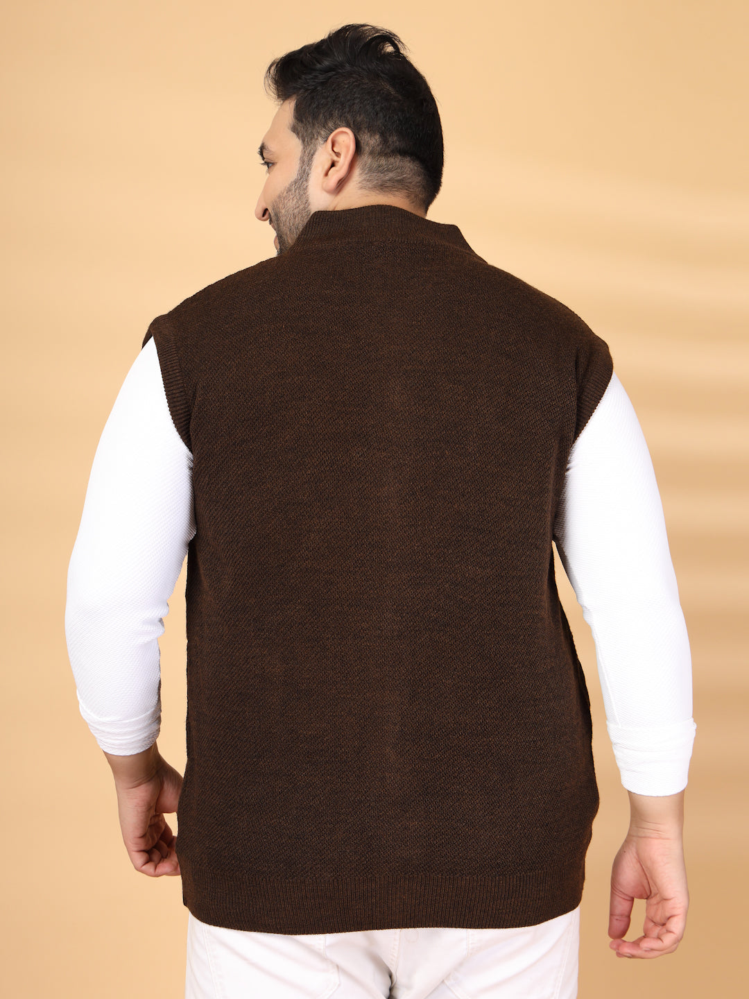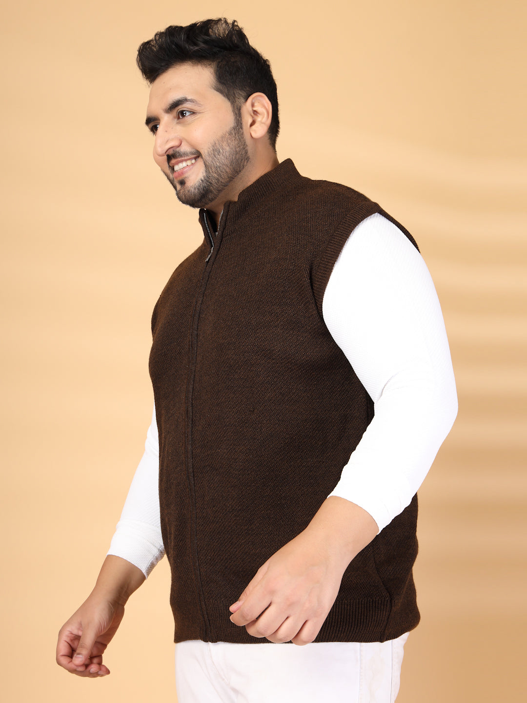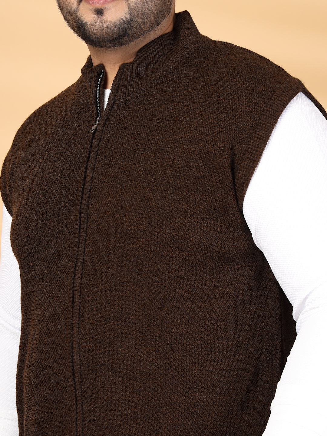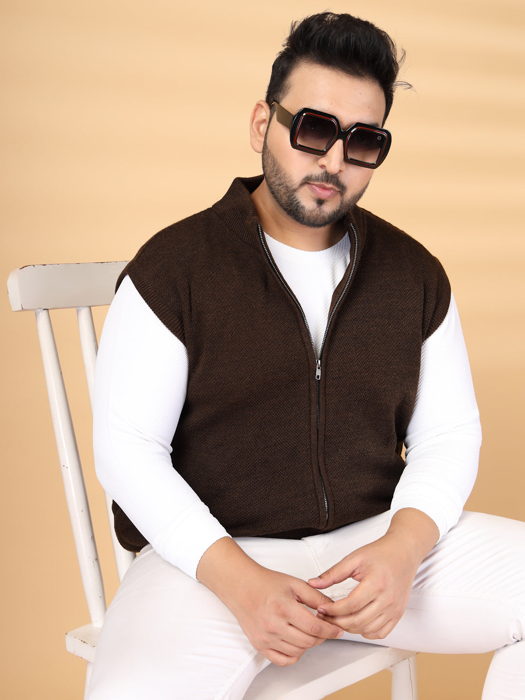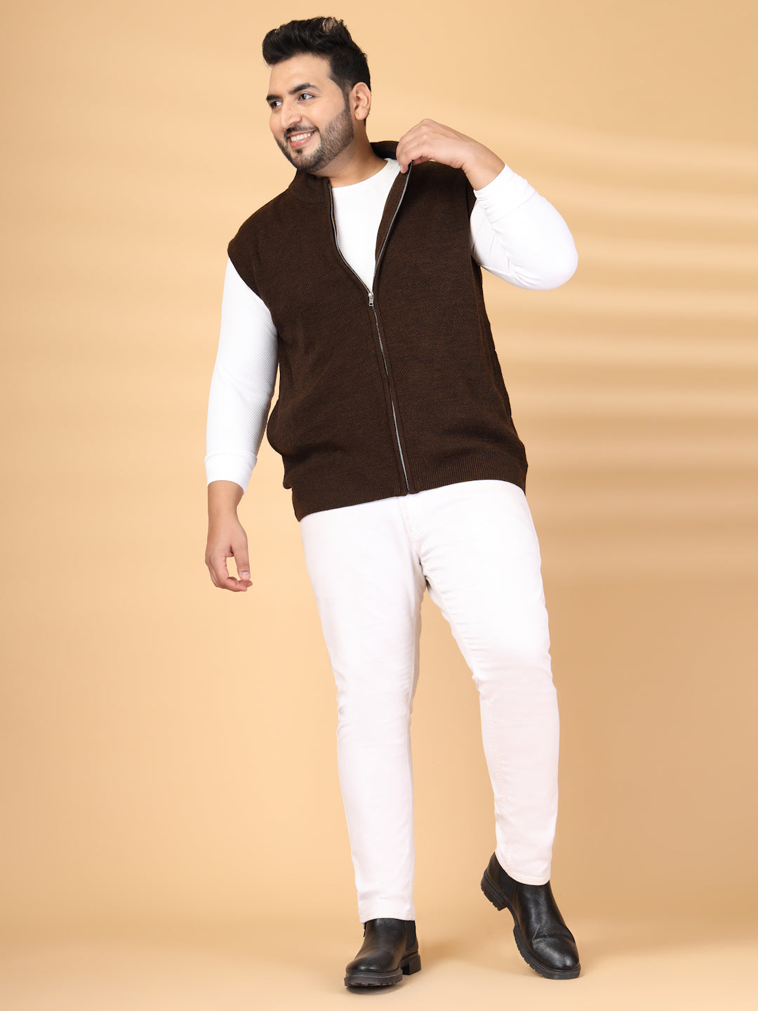 Plus Size Men Solid Sleeveless High Neck with Zip Detail Sweaters