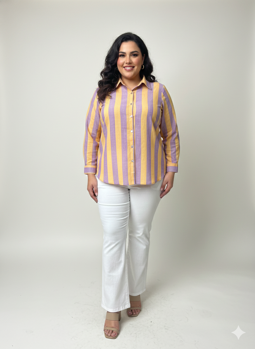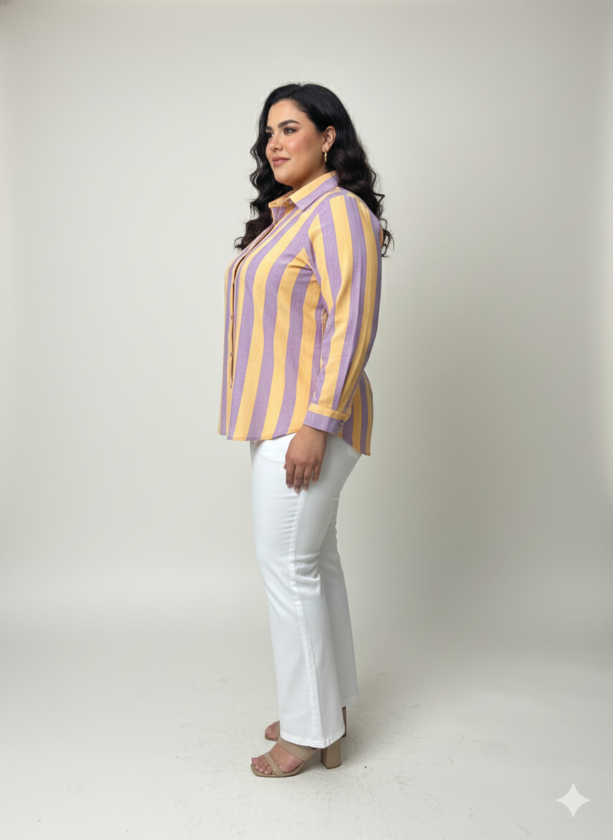 Purple Checked Casual shirt ,has a spread collar, button placket, long regular sleeves, curved hem