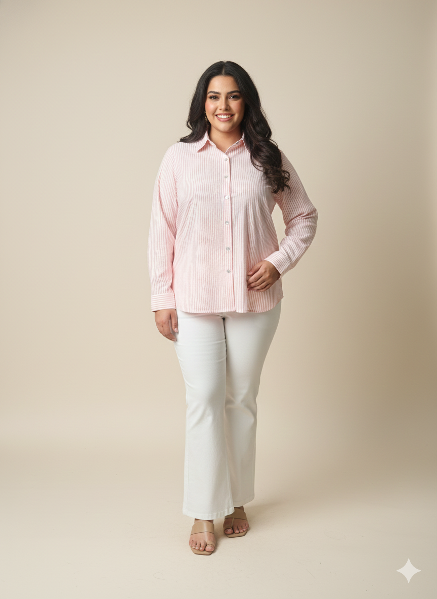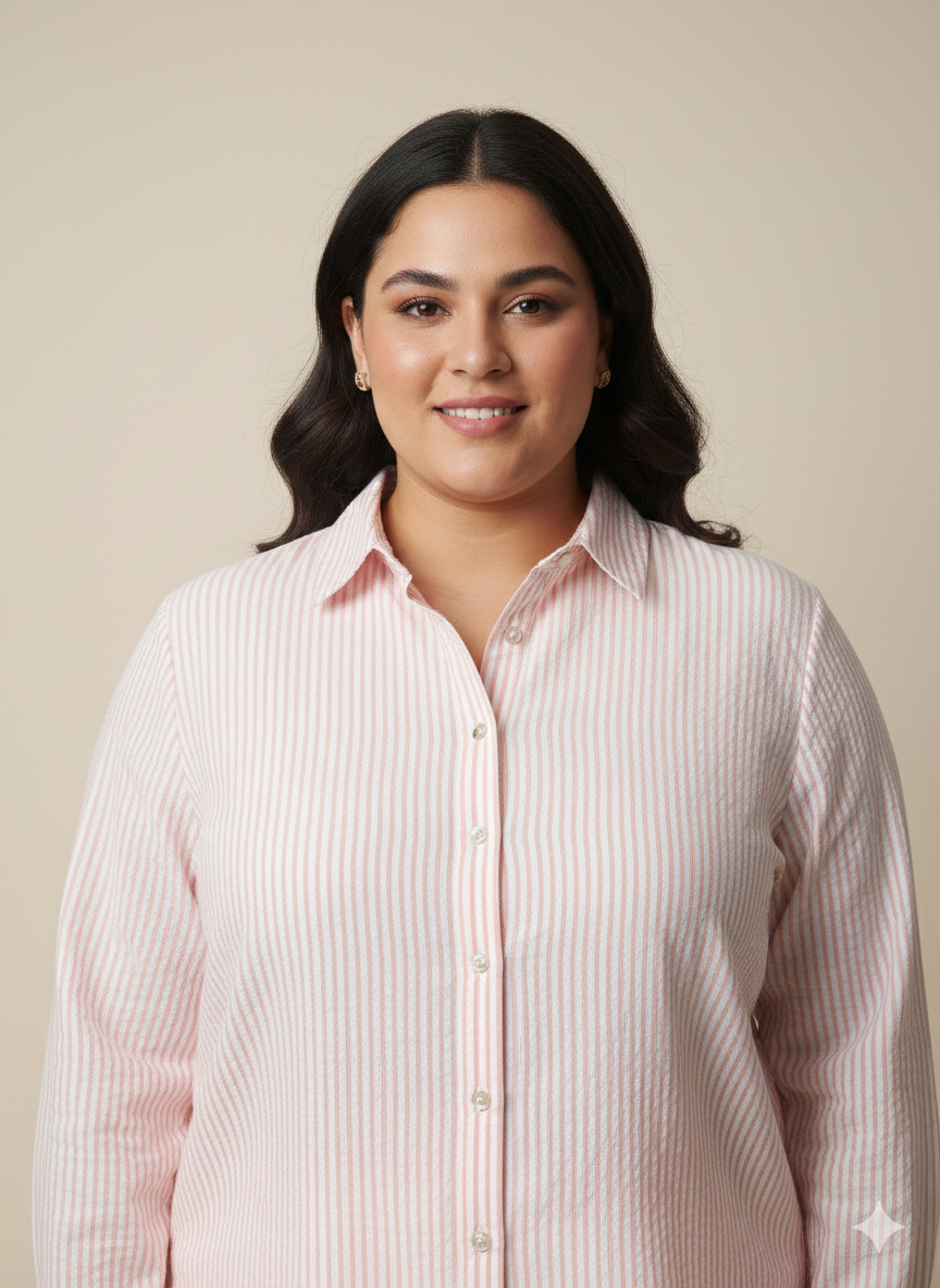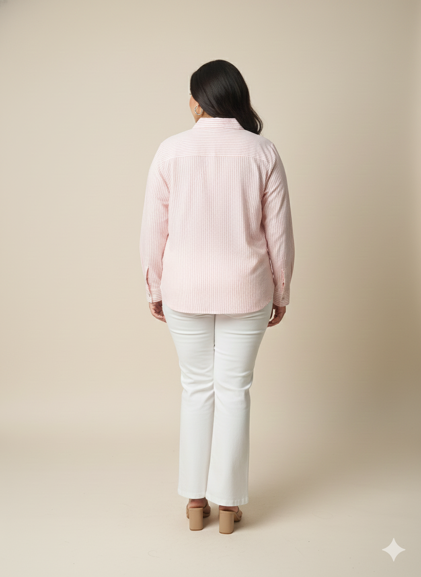 Pink And White Checked Casual shirt ,has a spread collar, button placket, long regular sleeves, curved hem