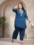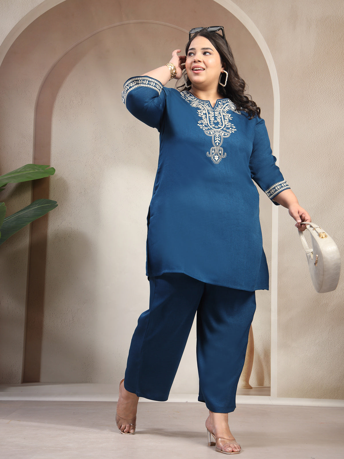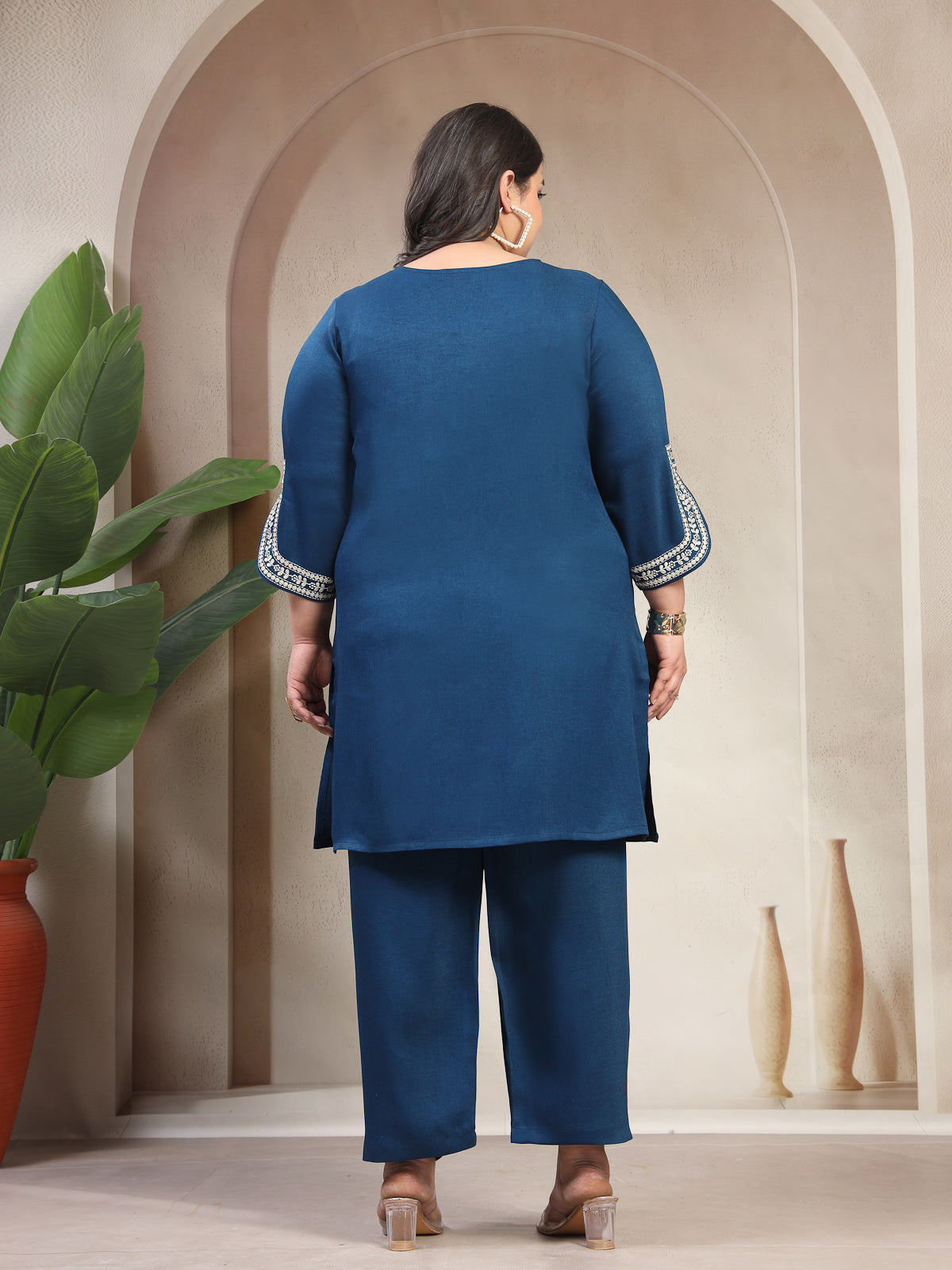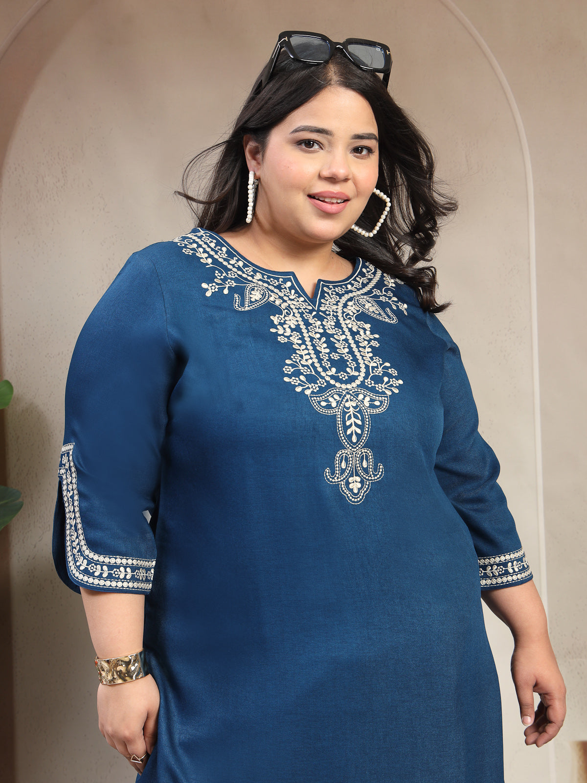 Top: Round Neck, Three Quarter Sleeves, Straight Hem, Side Slit,