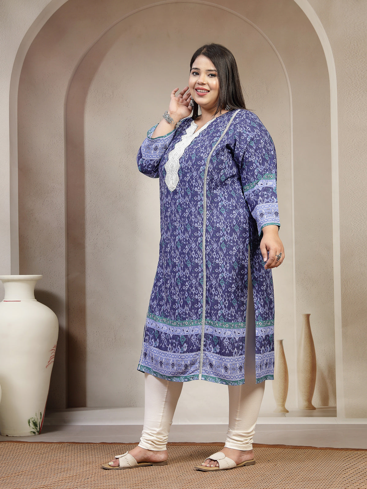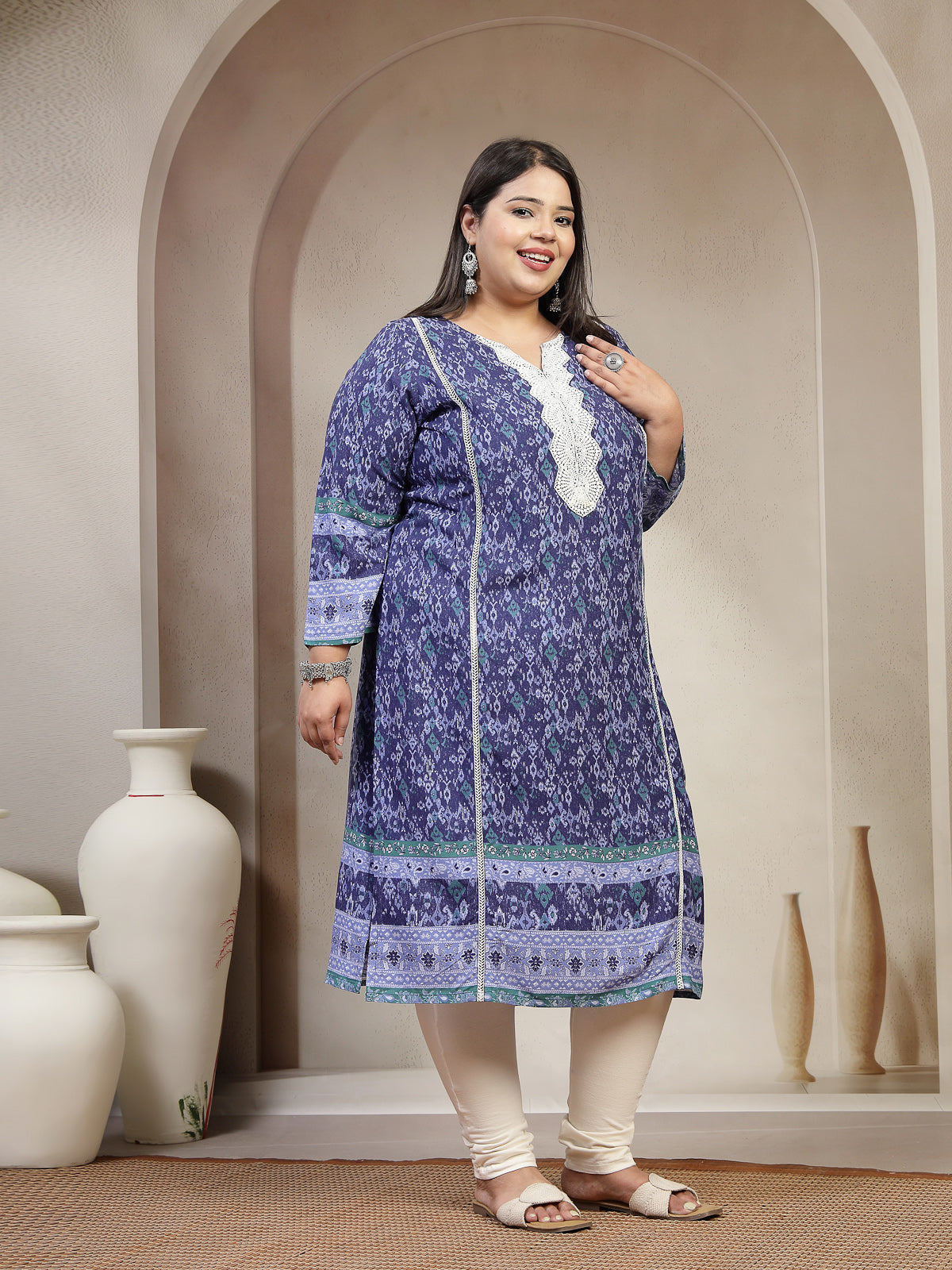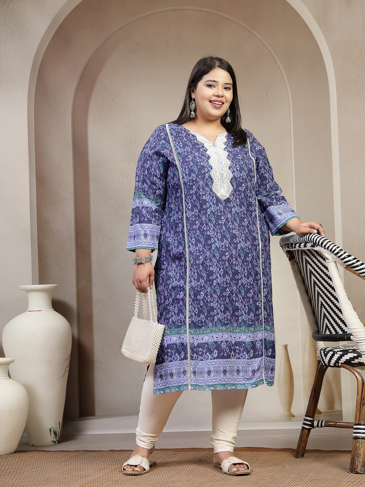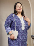Plus Size Women Geometric Printed Daily Straight Kurta