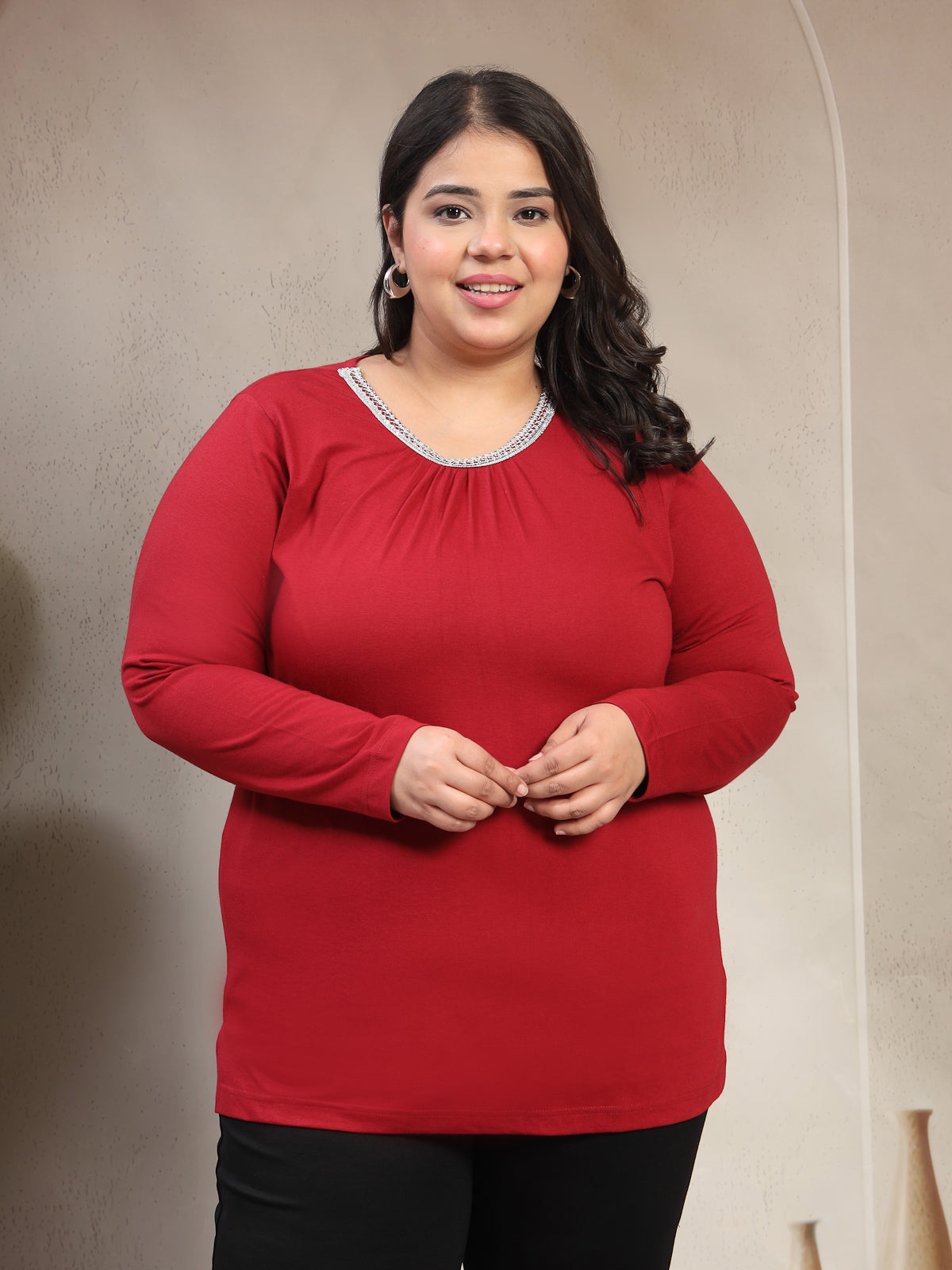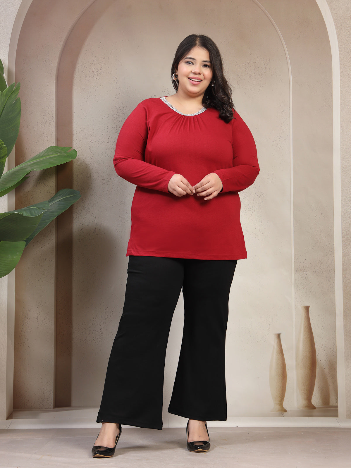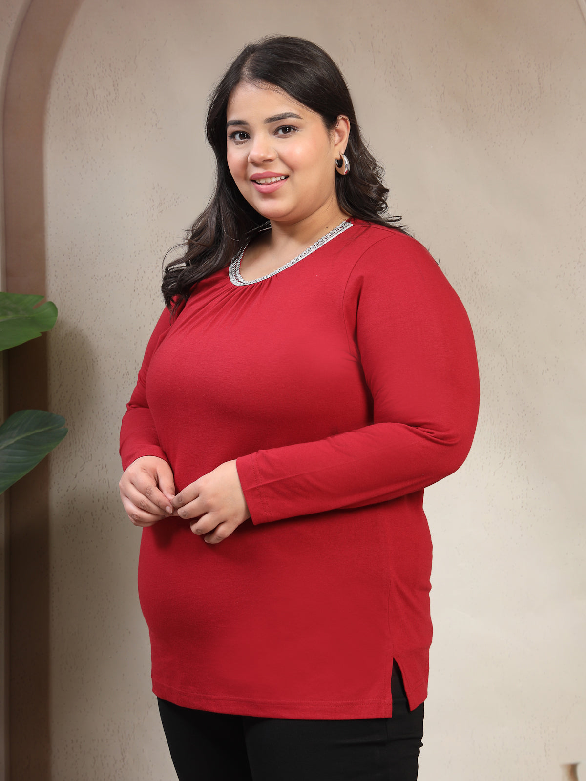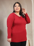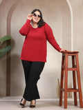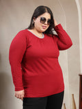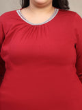 Plus Size Women Red Round Neck Cotton T-shirt