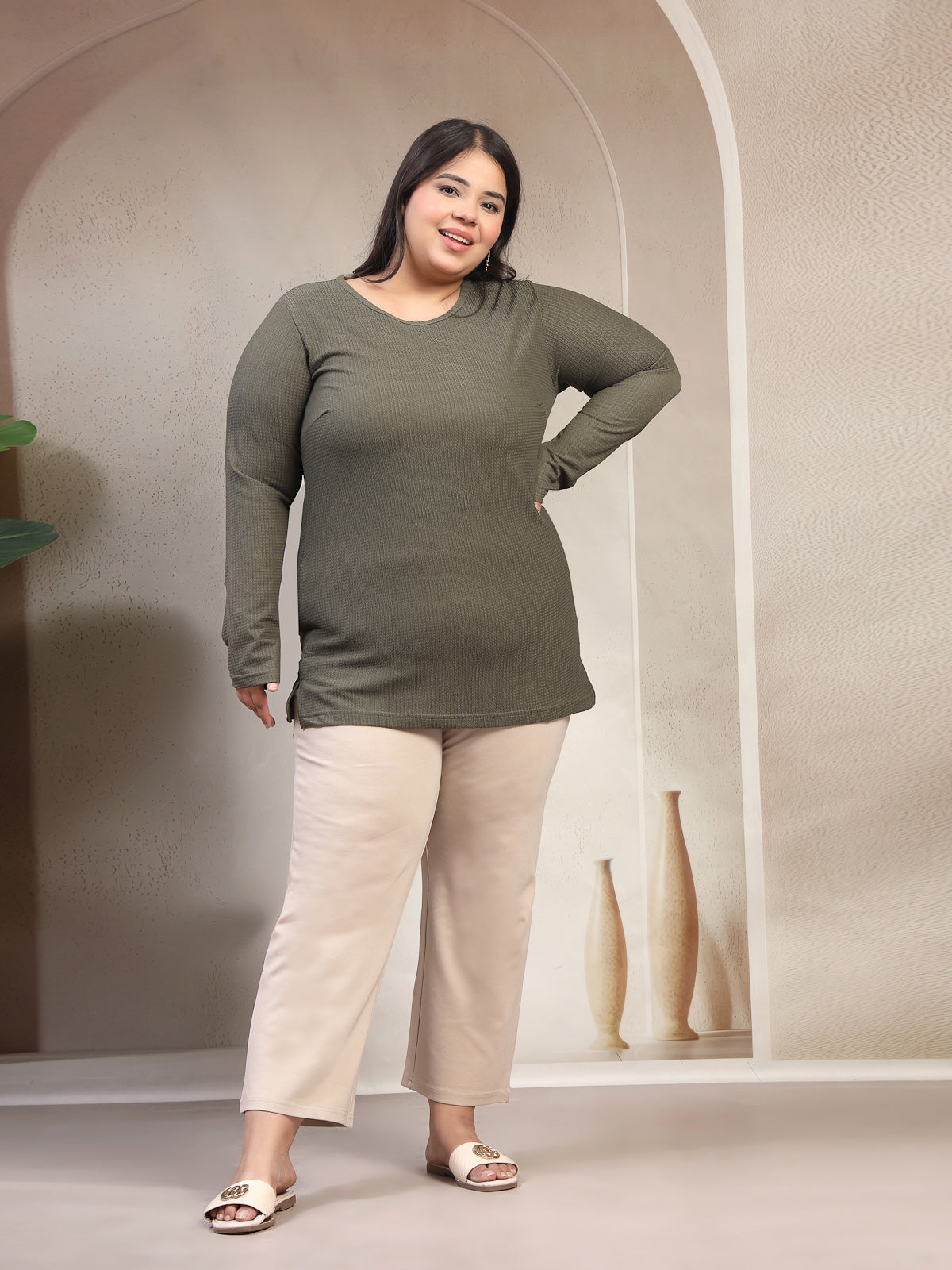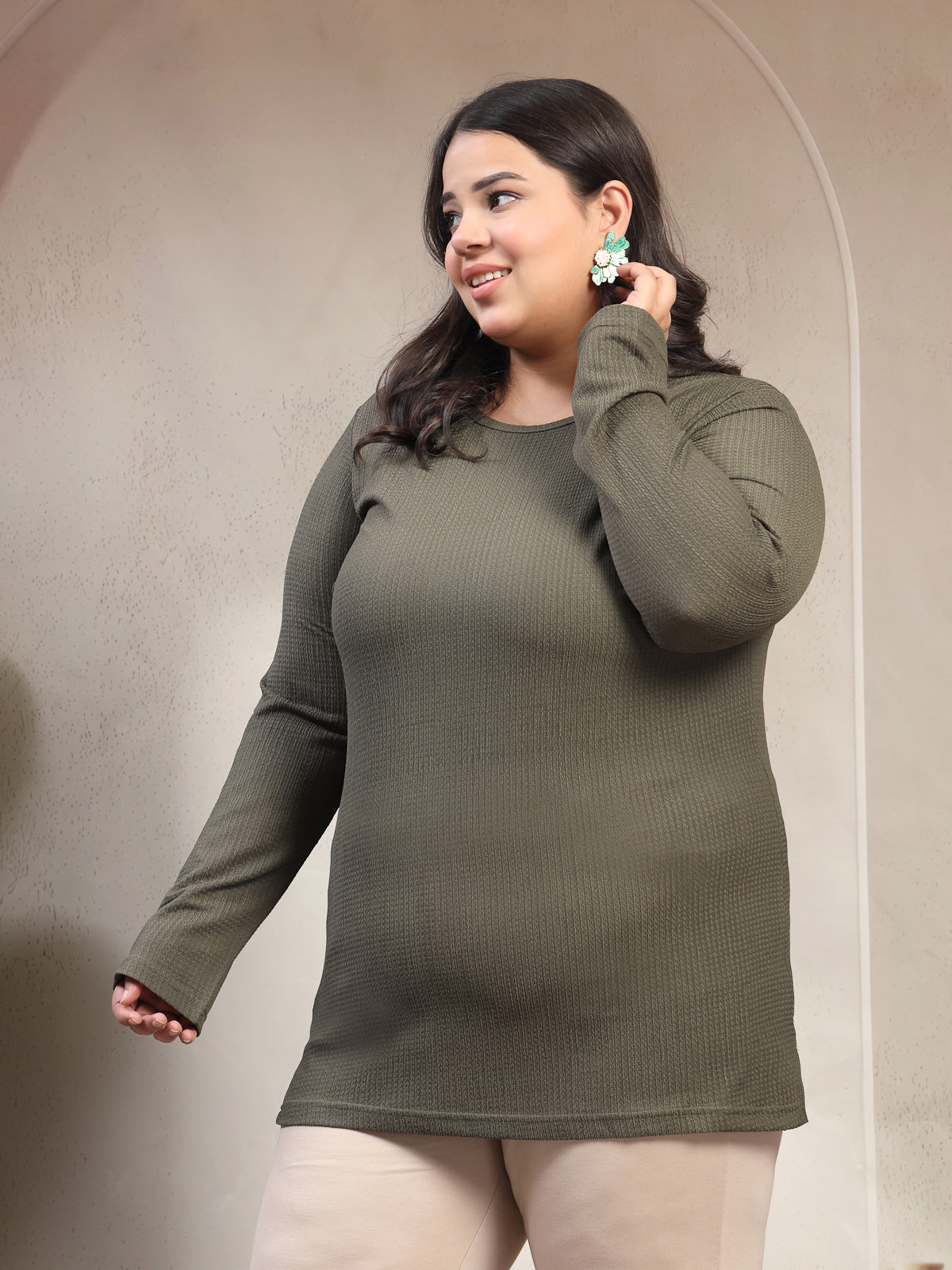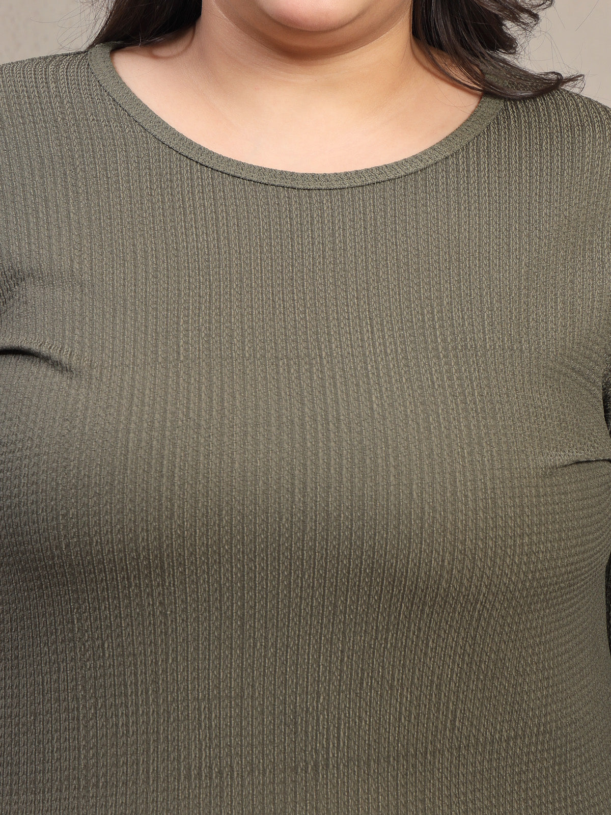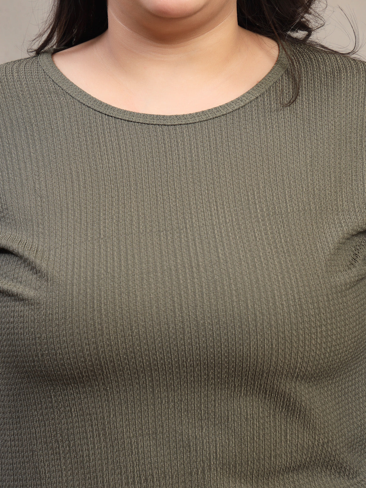 Plus Size Women Self Design Round Neck Cotton T-shirt