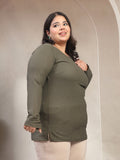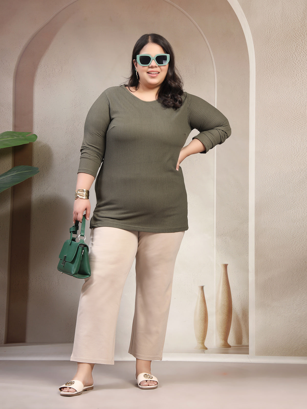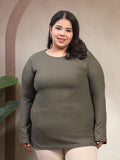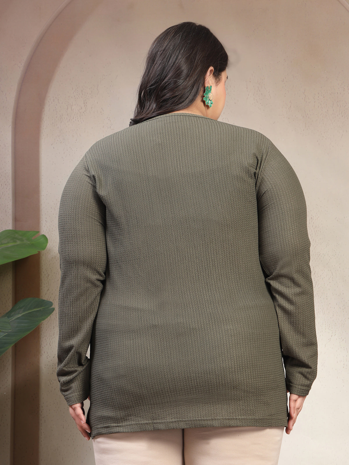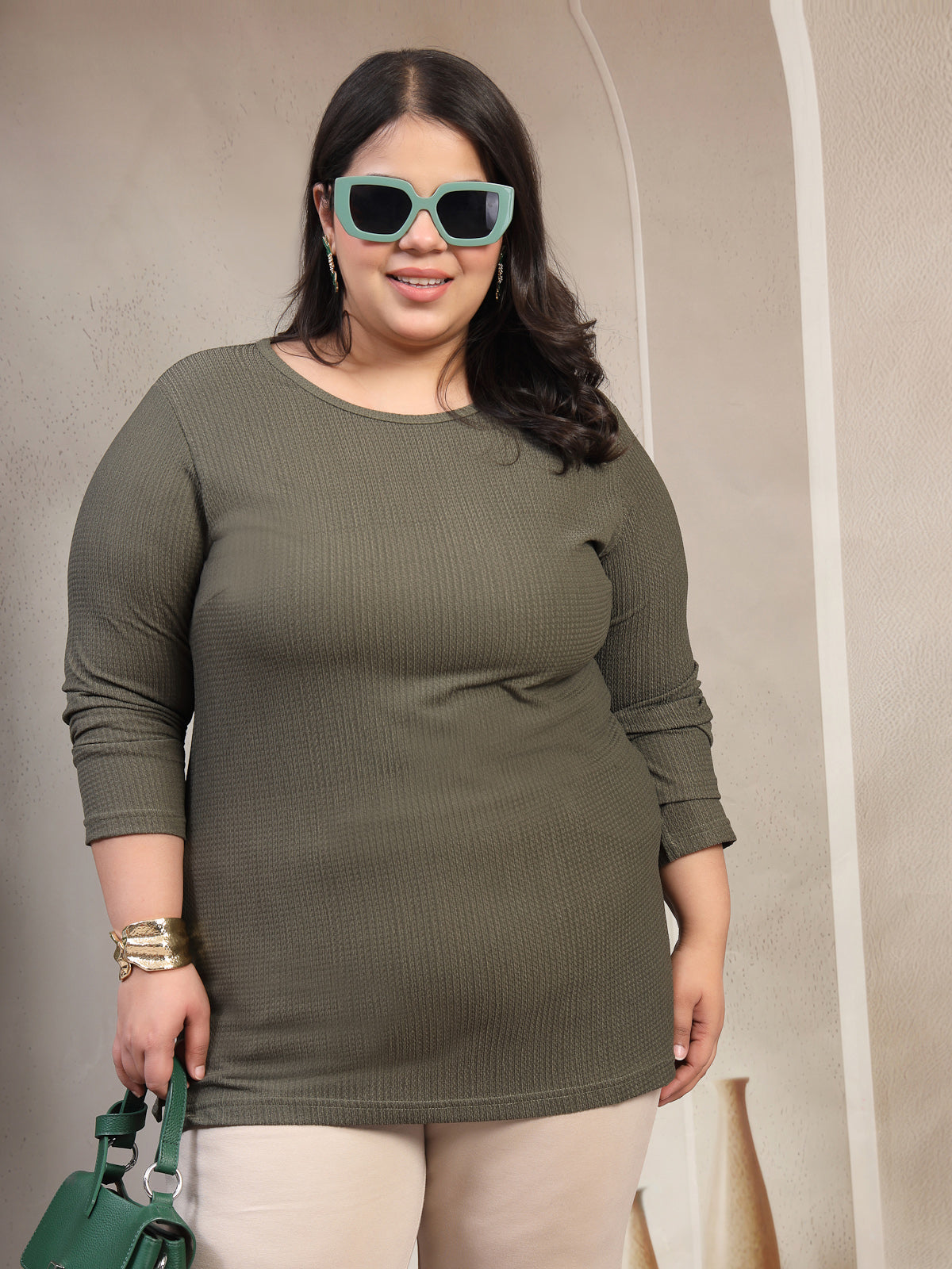 Plus Size Women Self Design Round Neck Cotton T-shirt