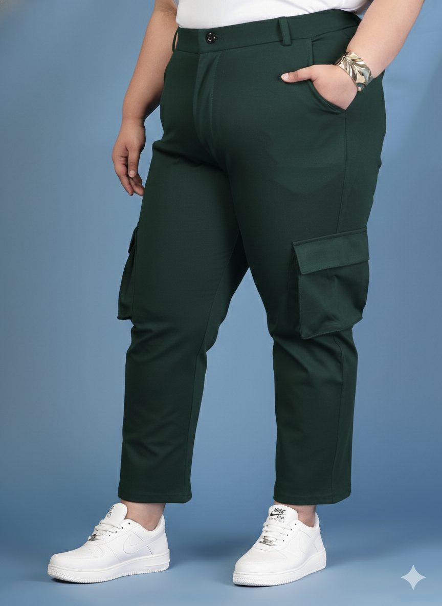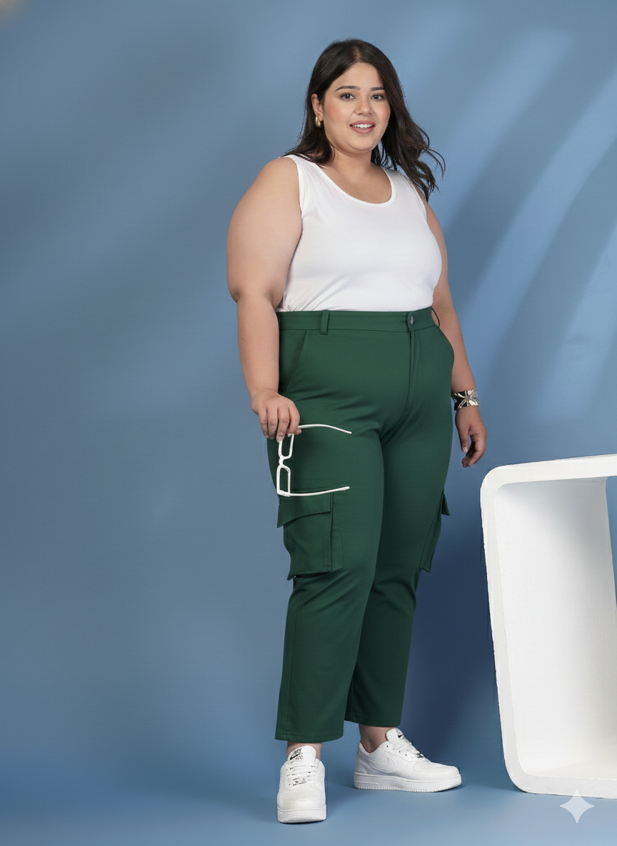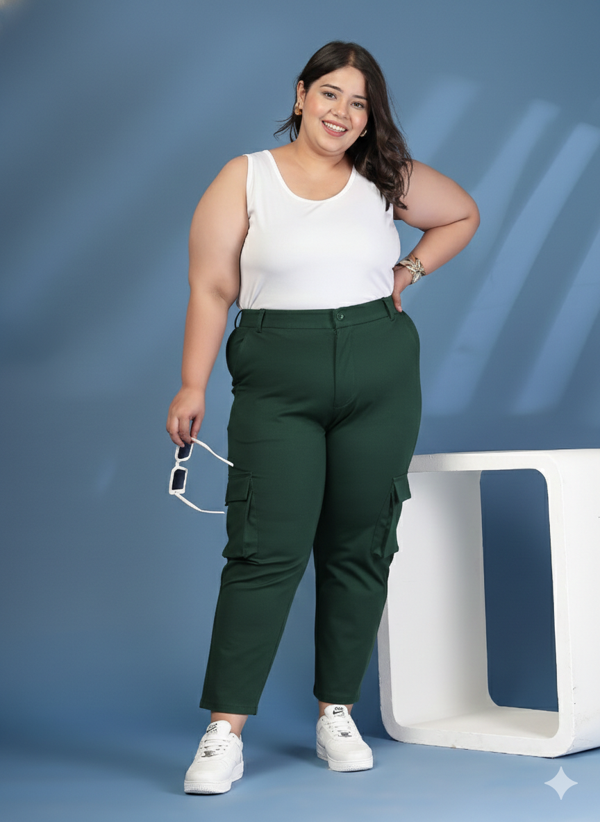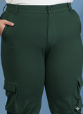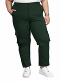 Plus Size Women Solid Mid Rise Regular Fit Cargo Trousers