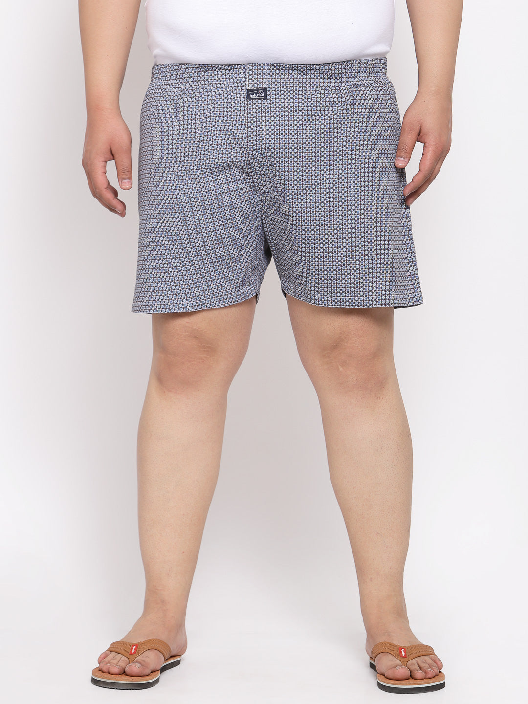 Plus Size Men Grey White Printed Pure Cotton Boxers MBX208E