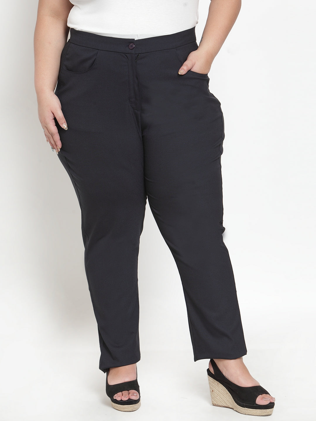 Plus Size Women Navy Blue Regular Fit Solid Regular Trousers