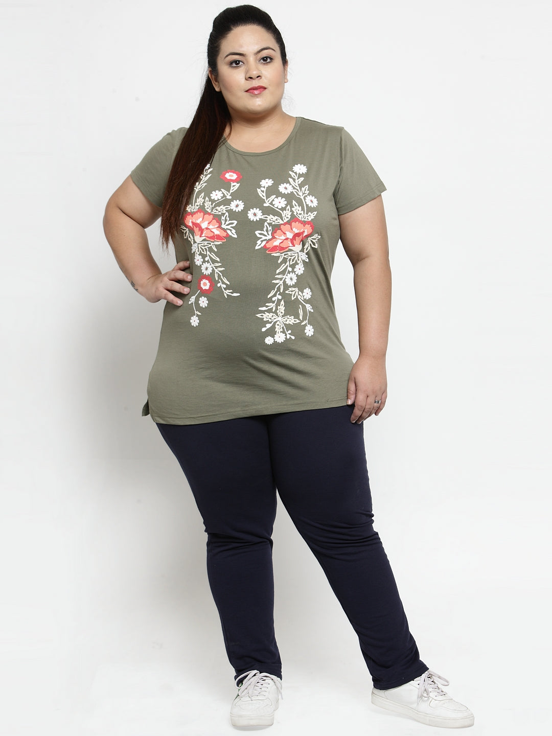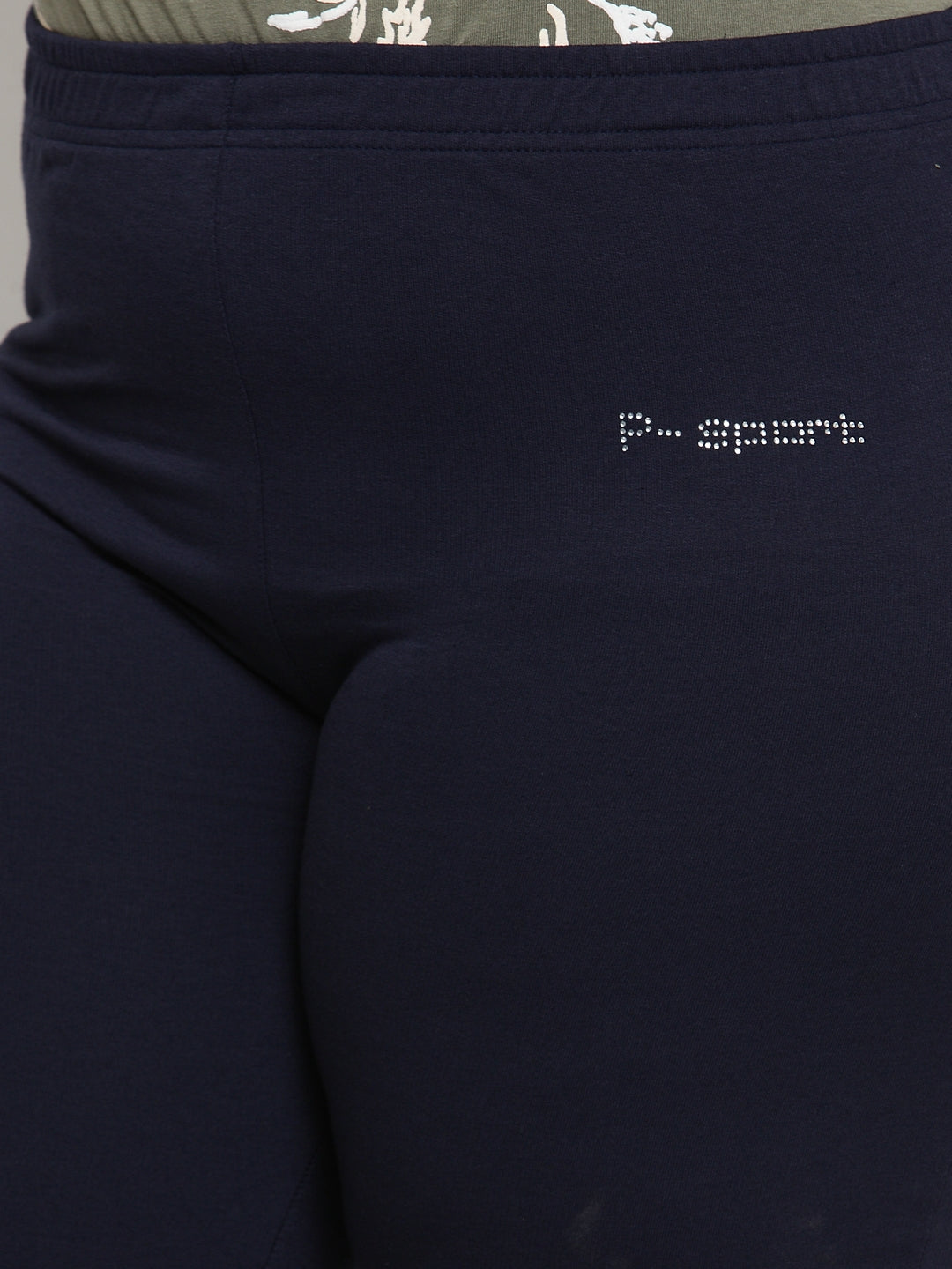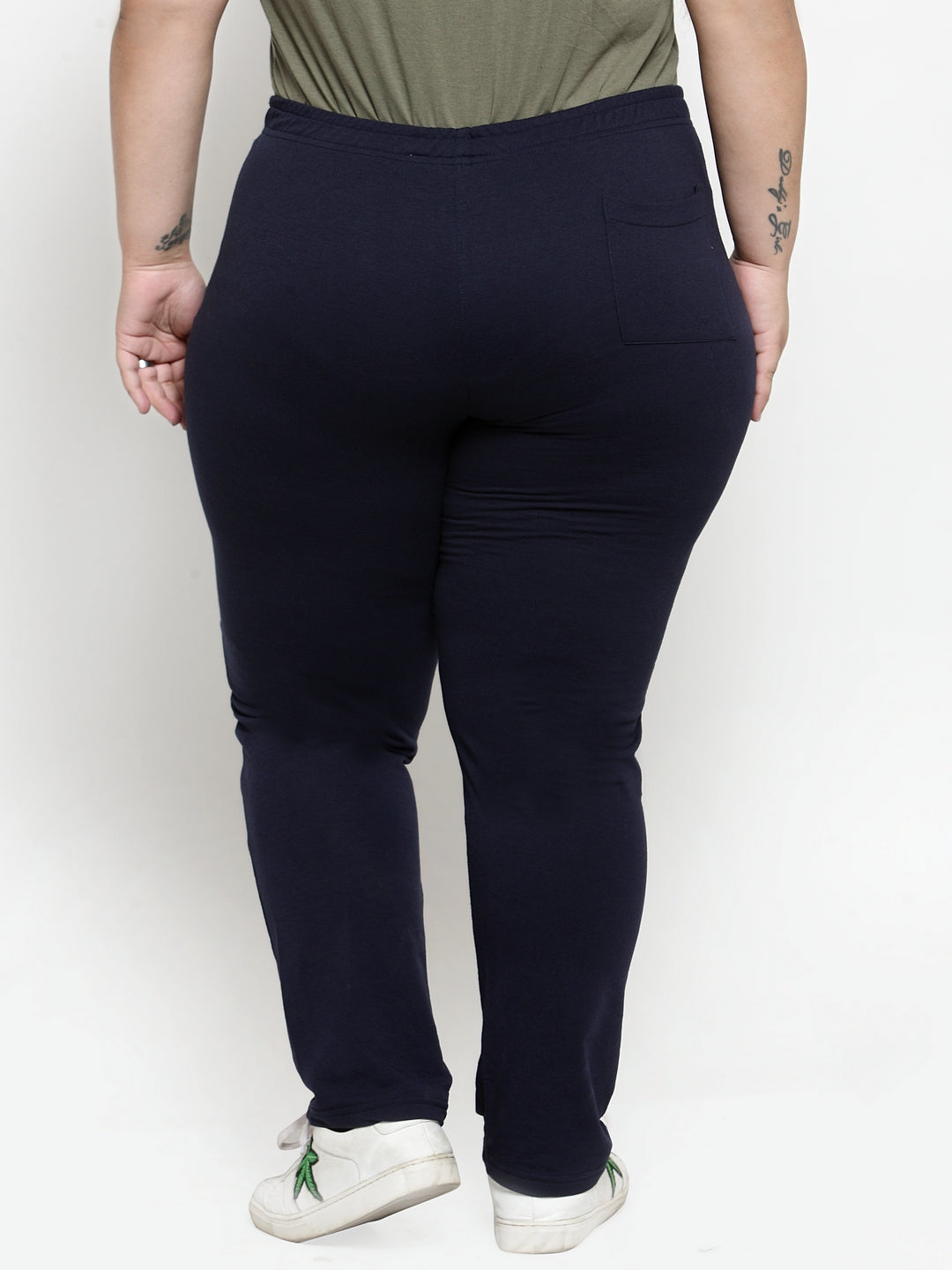 Plus Size Women Navy Blue Solid Straight-Fit Cotton Track Pants