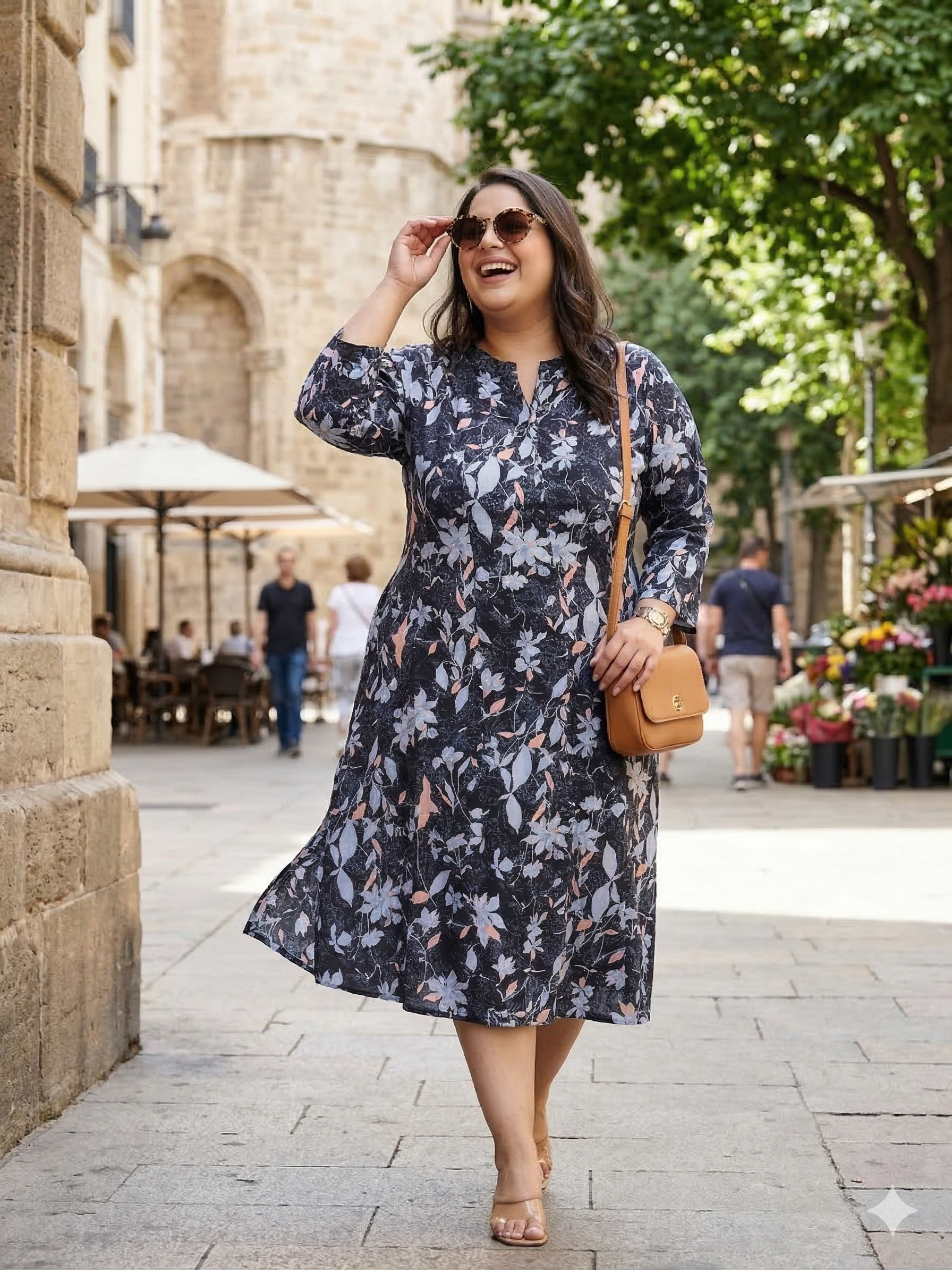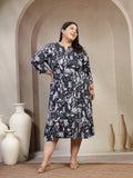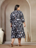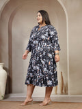 Women Plus Size Floral Print A-Line Midi Dress