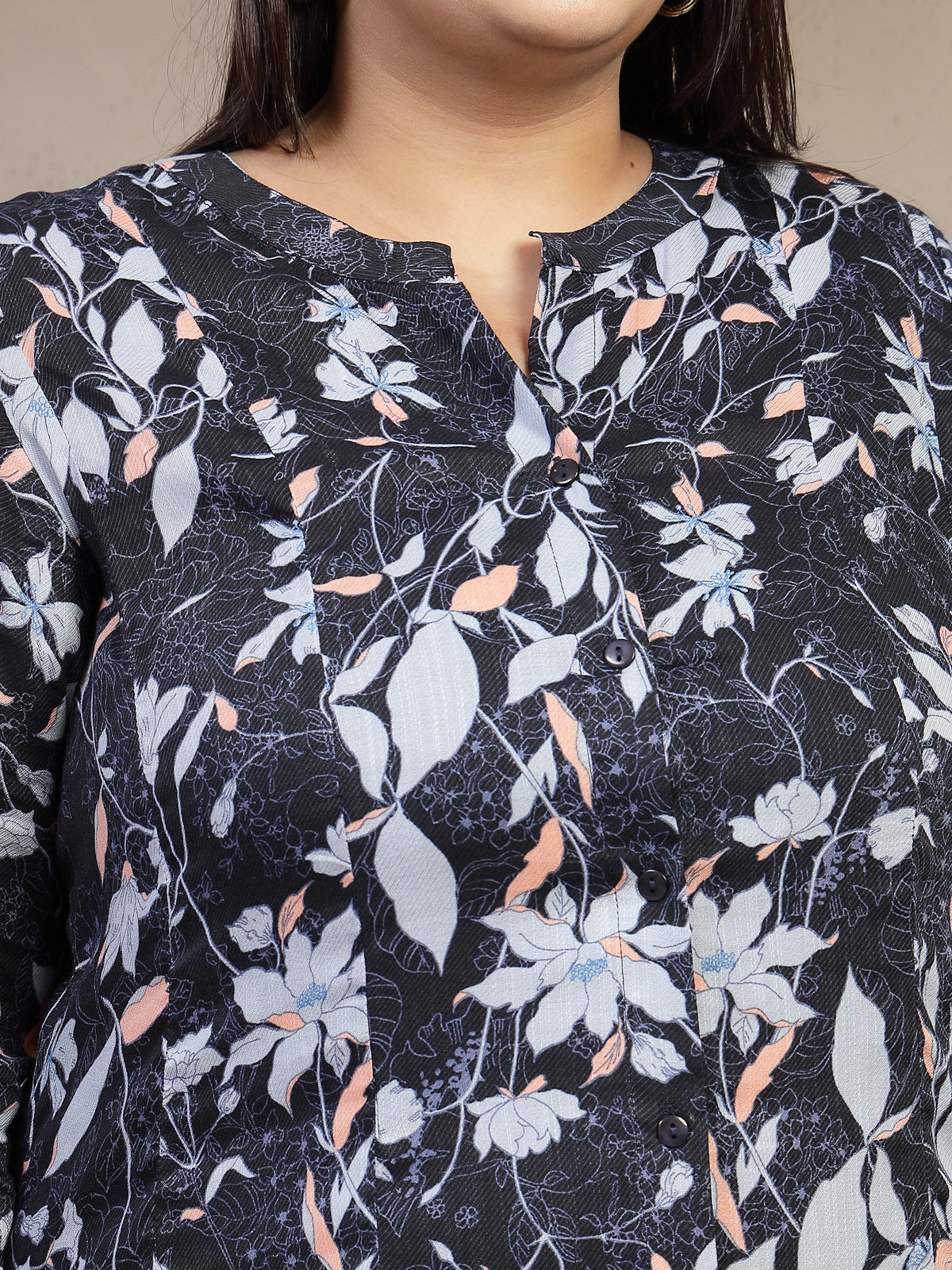 Elevate your wardrobe with this versatile black floral print a-line midi dress. The flattering V-neck and three-quarter sleeves offer a refined silhouette, while the midi length with straight hem provides timeless elegance. Functional button closure adds convenience to the classic design. Perfect for casual outings, work events, or weekend gatherings, this dress combines comfort with sophisticated style for the modern woman.